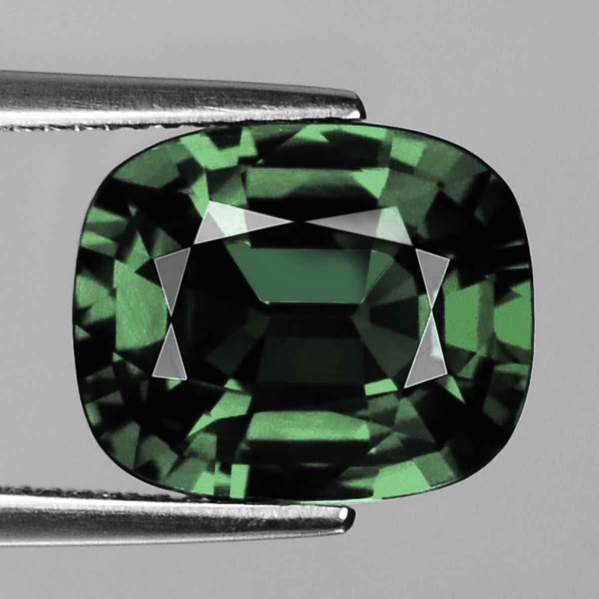 Natural Green Sapphire; WEIGHT : 1.74 cts; SHAPE : Cushion; SIZE ( L x W x D ) : 7.63 x 6.54 x 3.47 mm; QUANTITY : 1 piece; COLOR : Forest Green; CLARITY : Flawless-VVS; ORIGIN : Australia; HARDNESS : 9; LUSTER : Excellent!!! TREATMENT : Heated ;