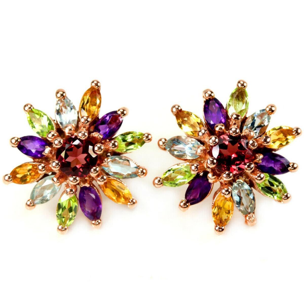 Natural GARNET TOPAZ AMETHYST PERIDOT CITRINE earrings; Main stone size:5 mm;Dimension Of Item W x L (mm.):17 x 19 mm.;Total Carat Weight (TCW):34.5;Metal Purity:925 parts per 1000....14; rose gold plated;Main Stone Shape:Round;