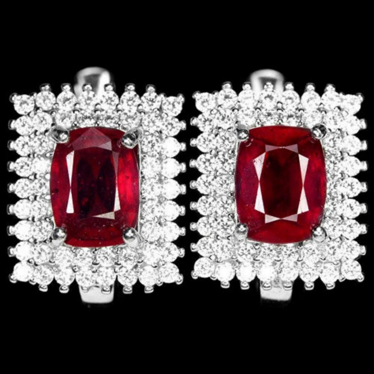 GENUINE RED RUBY CUSHION & WHITE CZ 925 SILVER EARRING 14K WHITE GOLD COATING;STONE SHAPECUSHIONSTONE DIMENSION8 X 6 MM.ITEM WEIGHT5.19 GRAMCOLORREDCLARITYTRANSLUCENTLUSTERALLURINGTREATMENTHEATEDORIGIN OF STONEAFRICAHARDNESS9.0FACE OF EARRING 14 X 12 MM. WHITE CUBIC ZIRCONIA 1.2 MM.