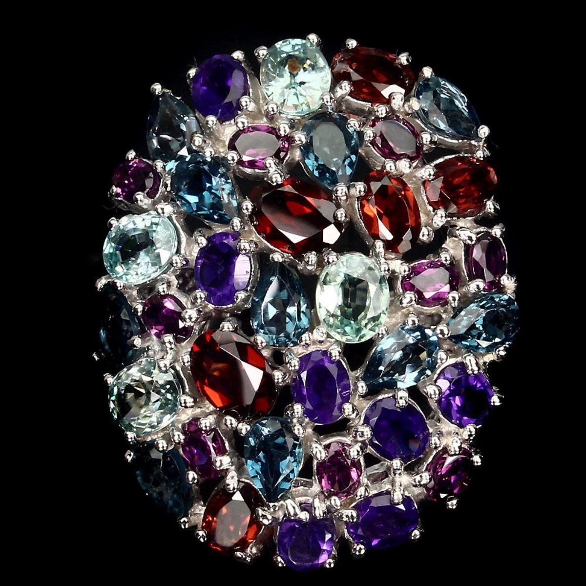 925 STERLING SILVERPLATE14K WHITE GOLDRING SIZE/..8; resizeable;MAIN STONEMOZAMBIQUE GARNETOTHER GEMSAMETHYST,LONDON BLUE TOPAZ,RHODOLITE GARNET,ZIRCONTOTAL WEIGHT76.82 CT (TOTAL WEIGHT OF SILVER + STONE)DIMENSION* STONE 4.0 X 3.0 TO 7.0 X 5.0 MM. * FACE RING 37.0 X 29.0 MM.MAIN STONE SHAPEOVAL CUTMAIN STONE COLORTOP REDDISHCLARITY/GRADEIF TO VVSLUSTERPRECIOUSTREATMENTUNHEATEDORIGINAFRICAHARDNESS7.0 - 7.5
