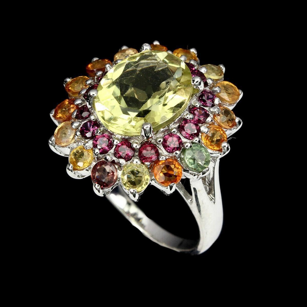 925 STERLING SILVER;PLATE-14K WHITE GOLD;RING SIZE-8.5(resizeable)MAIN STONE-GREEN GOLD QUARTZ;OTHER GEMS-RHODOLITE GARNET, SAPPHIRE;TOTAL WEIGHT-6.88 GRAM (TOTAL WEIGHT OF SILVER + STONE)DIMENSION-* STONE 2.0 TO 12.0 X 10.0 MM. * RING SIZE 8.5 * FACE RING- 23.0 X 21.0 MM.;MAIN STONE SHAPE-OVAL CUT;MAIN STONE COLOR-AAA GREEN GOLD;CLARITY/GRADE-IF;TREATMENT-UNHEATED;ORIGIN-BRAZIL;HARDNESS-7.0 - 9.0;