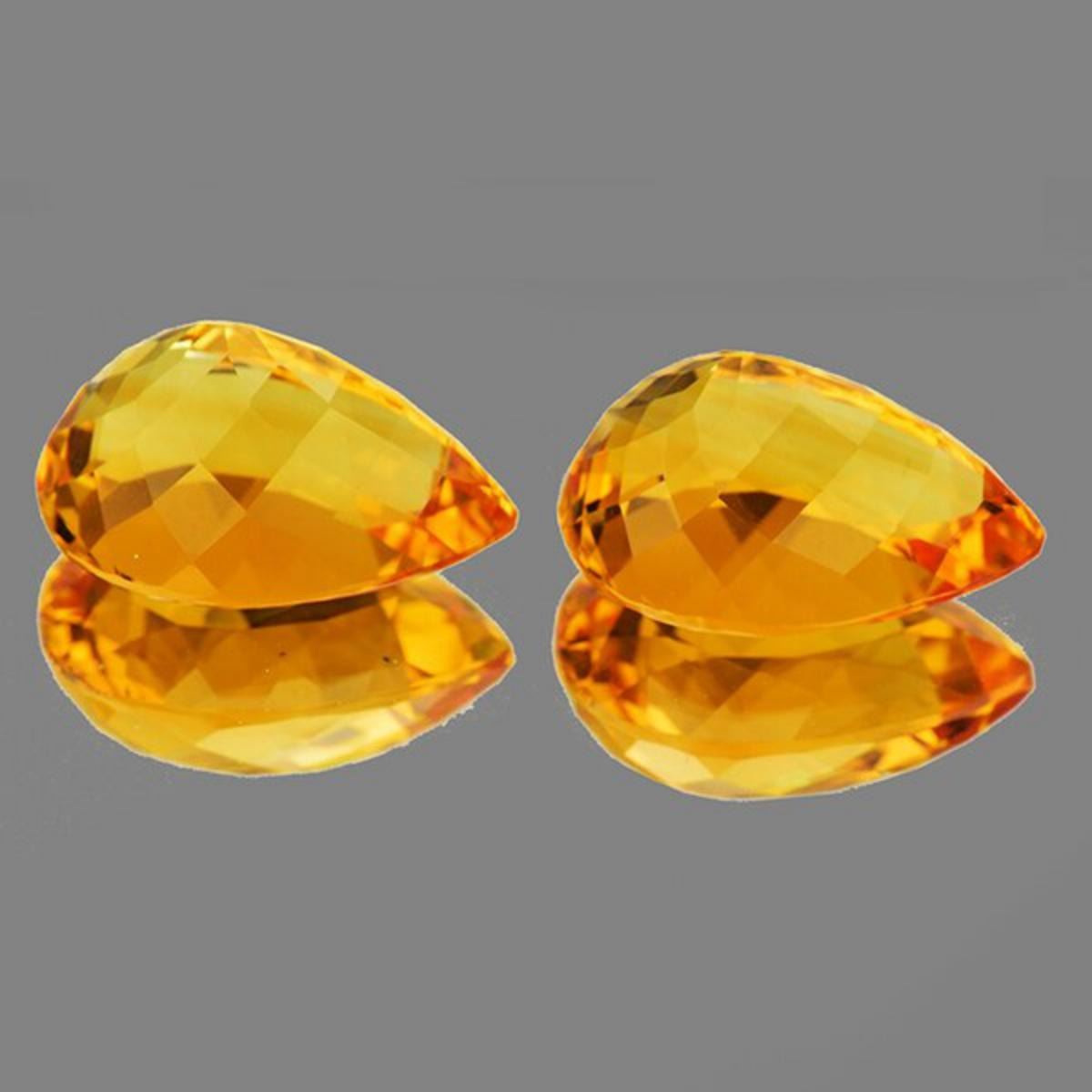WEIGHT : 19.45 ctsSTONE NAME : Natural CitrineSIZE ( L x W x D ) : 17 x 12 mmCOLOR : Golden OrangeSHAPE : PearQUANTITY : 2 piecesLUSTER : Excellent (Satisfaction guaranteed)CLARITY : IF-VVS1 HIGH QUALITYHARDNESS : 7ORIGIN : Brazil TREATMENT : 100% Natural Unheated