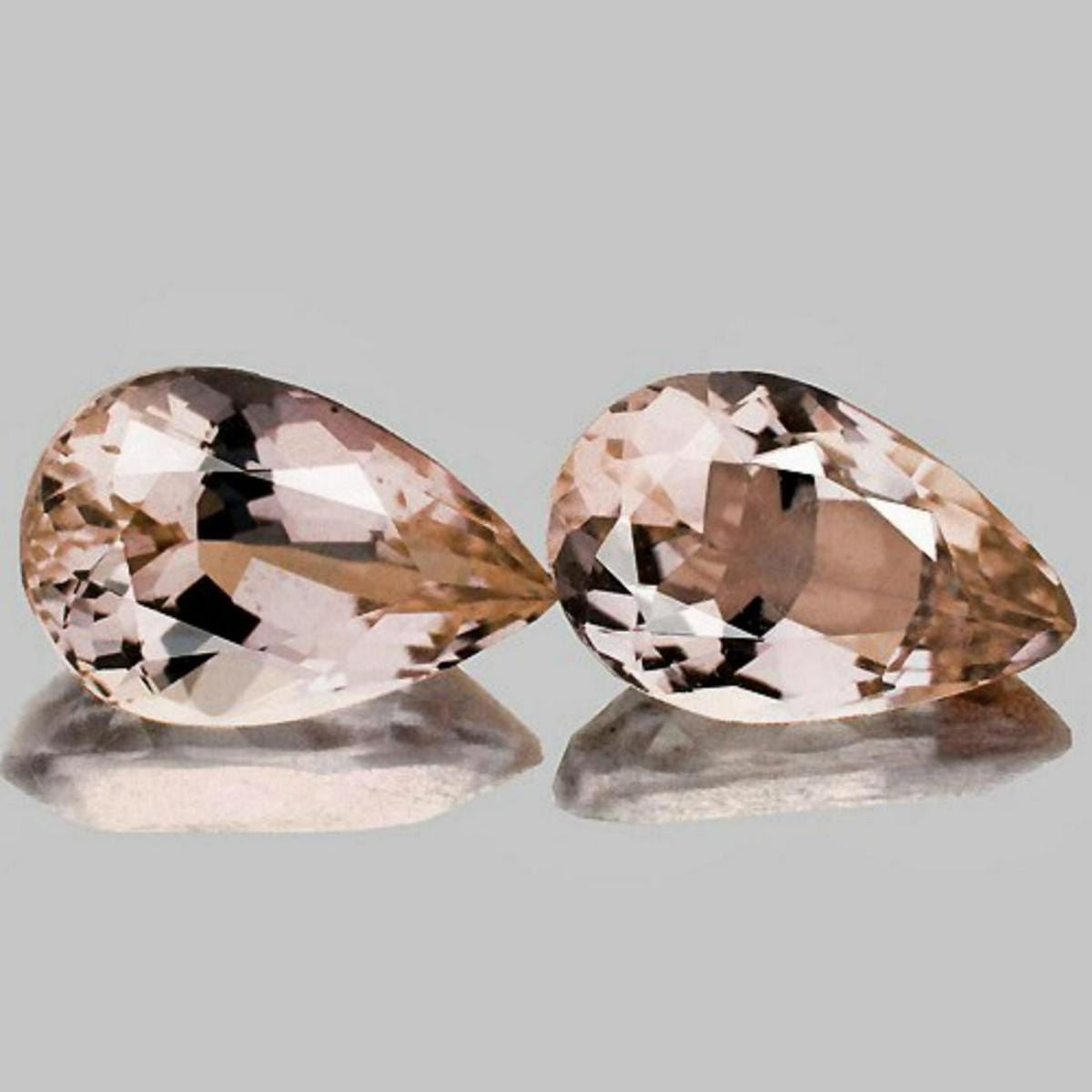 Natural MorganiteSIZE ( L x W x D ) : 8 x 5 mmCOLOR : Golden PinkSHAPE : PearQUANTITY : 2 piecesLUSTER : Excellent!CLARITY : Flawless - VVSHARDNESS : 8ORIGIN : Brazil TREATMENT : 100% Natural. Heated