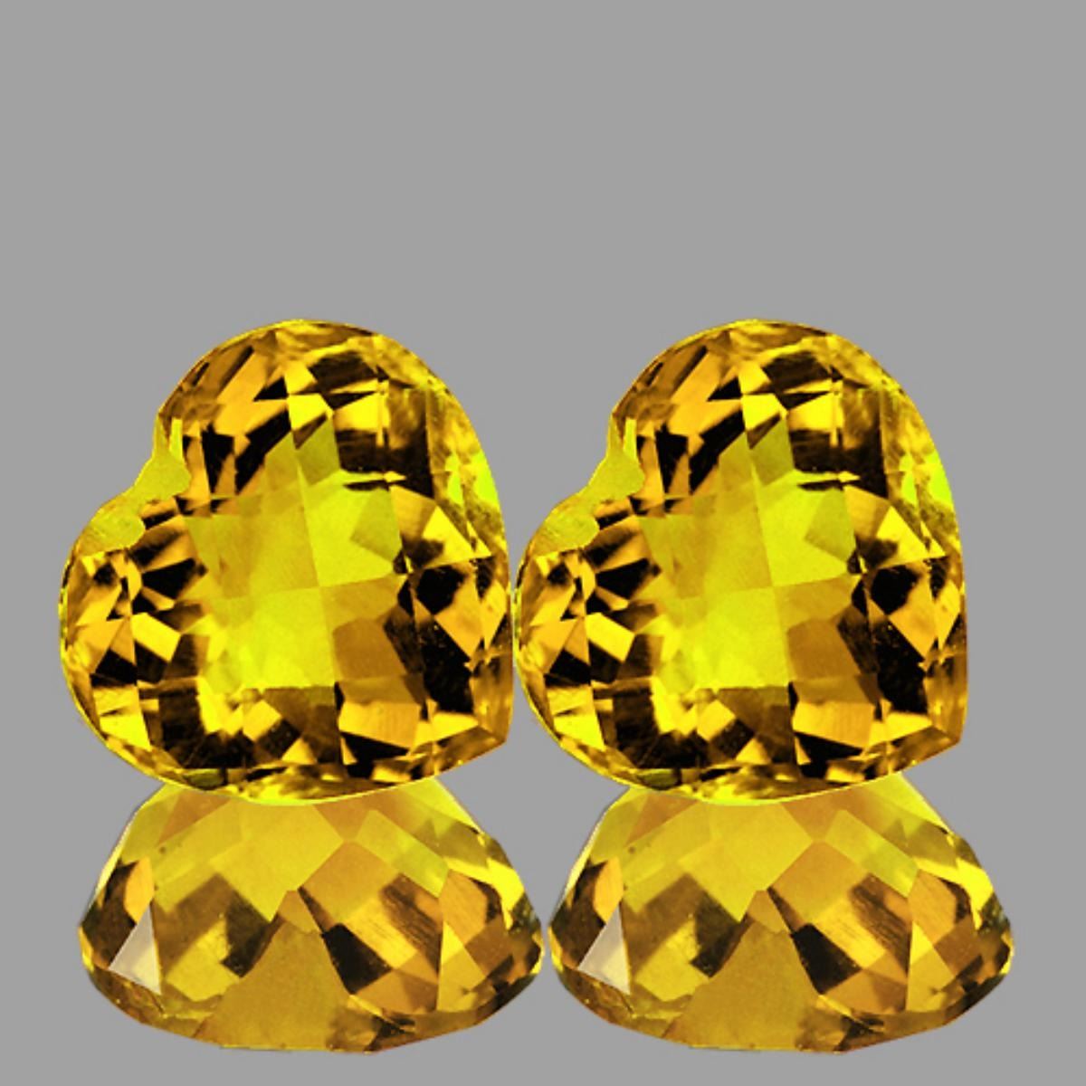 Natural Citrine; SHAPE : Heart SIZE ( L x W x D ) : 10.00 mm QUANTITY : 2 pieces (Perfectly Matched Pair) COLOR : Golden Yellow CLARITY : IF-VVS1 ORIGIN : Brazil HARDNESS : 7 LUSTER : Excellent!!! TREATMENT : 100% Natural Unheated