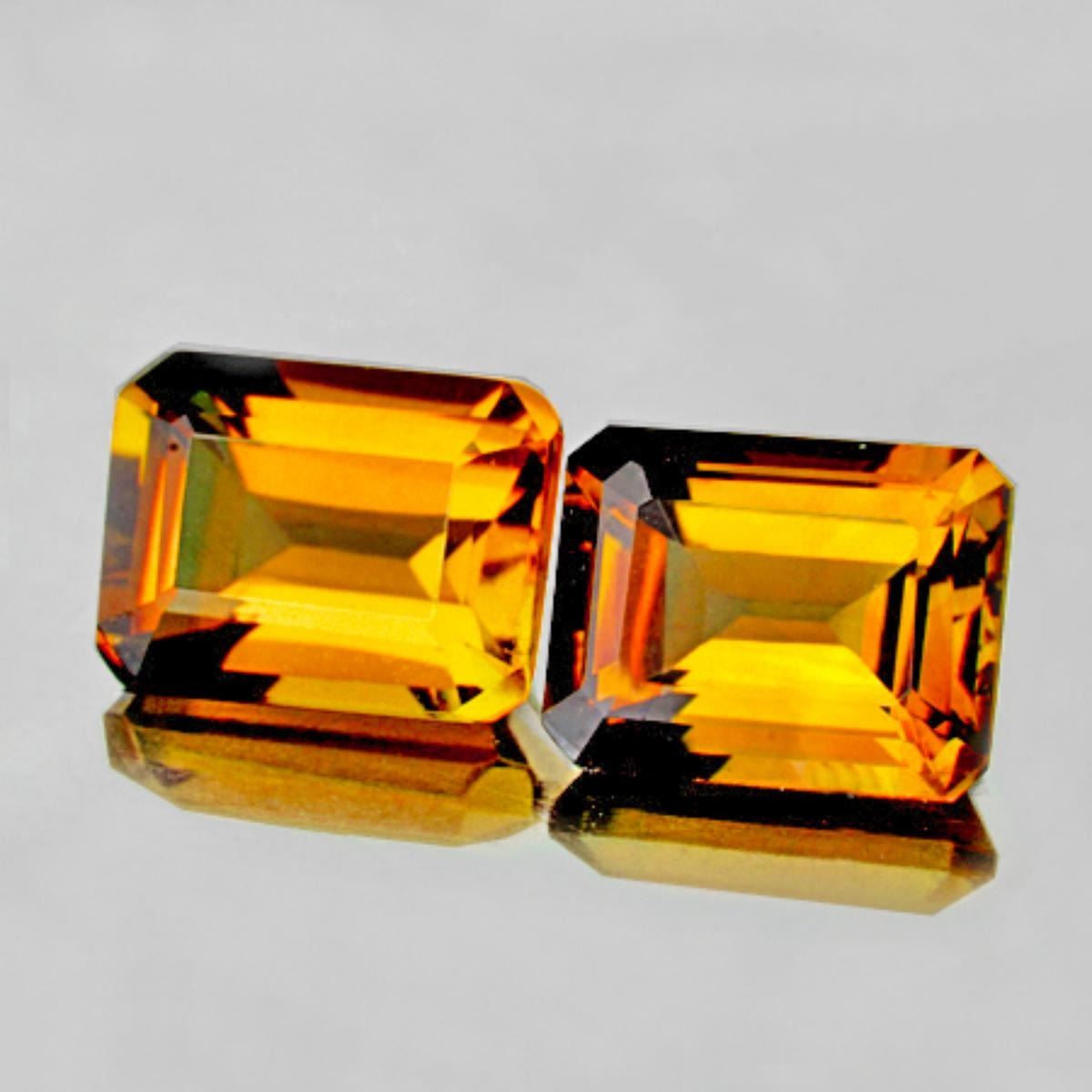 Natural Citrine; SHAPE : Rectangle; SIZE ( L x W x D ) : 7.00 x 5.00 mm; QUANTITY : 2 pieces (Perfect Matching Pair) COLOR : Golden Yellow; AAA Color; CLARITY : Flawless-VVS AAA Grade; ORIGIN : Brazil; HARDNESS : 7; LUSTER : AAA Fire!!! TREATMENT : 100% Natural Unheated;