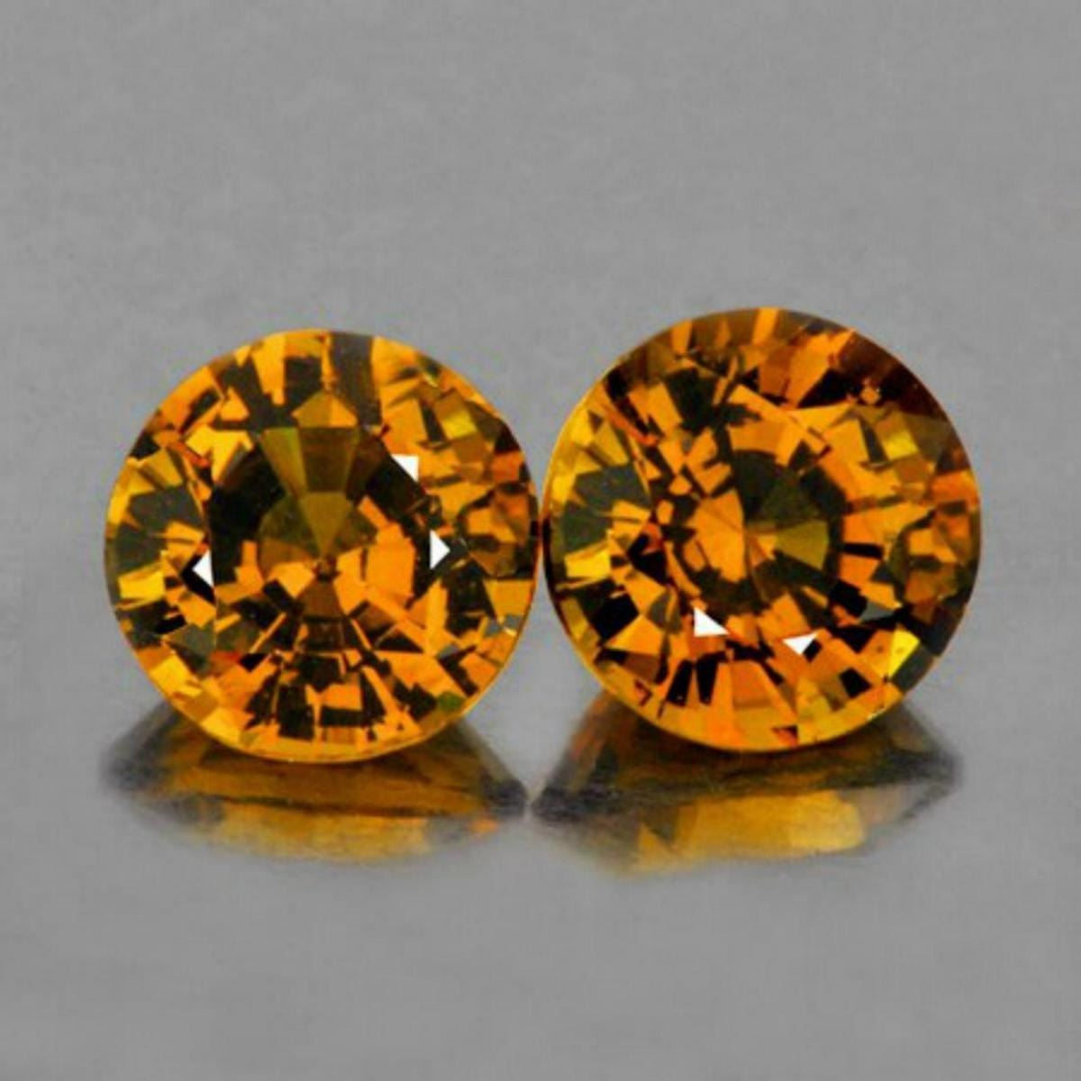 Natural Mali Garnet; WEIGHT : 0.96 cts; SHAPE : Round; SIZE ( L x W x D ) : 4.20 mm; QUANTITY : 2 pieces (Perfctly Matched Pair) COLOR : Golden Yellow AAA Color; CLARITY : Flawless-VVS AAA Grade; ORIGIN : Sandare Mine in Mali’s Kayes Region; HARDNESS : 7; LUSTER : AAA Fire!!! TREATMENT : 100% Natural Unheated;