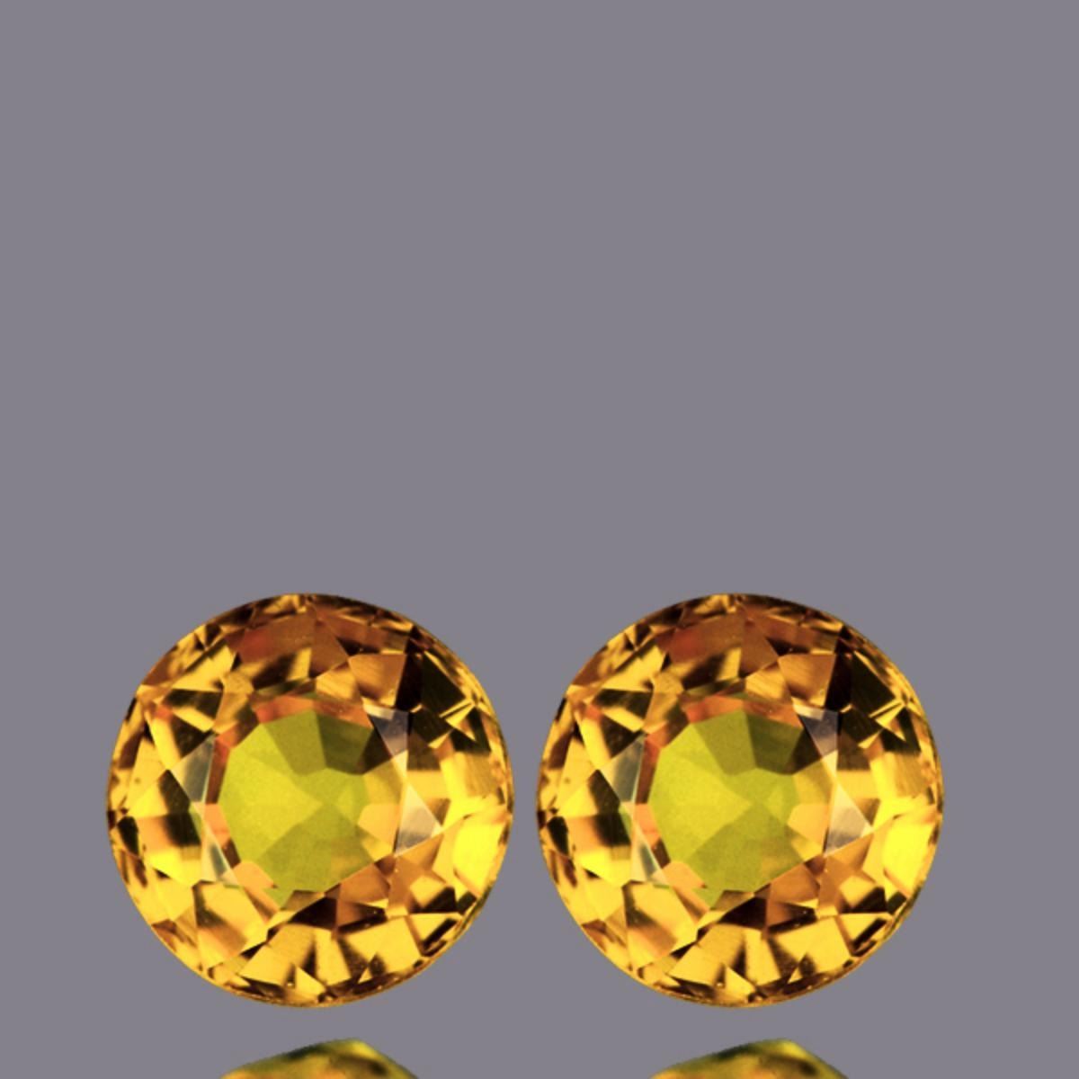 Natural Yellow Sapphire ; SHAPE : Round SIZE ( L x W x D ) : 4.70 mm QUANTITY : 2 pieces ( Perfectly Matched Pair) COLOR : Top Golden Yellow CLARITY : Flawless-VVS ORIGIN : Ceylon HARDNESS : 9 LUSTER : Excellent!!!