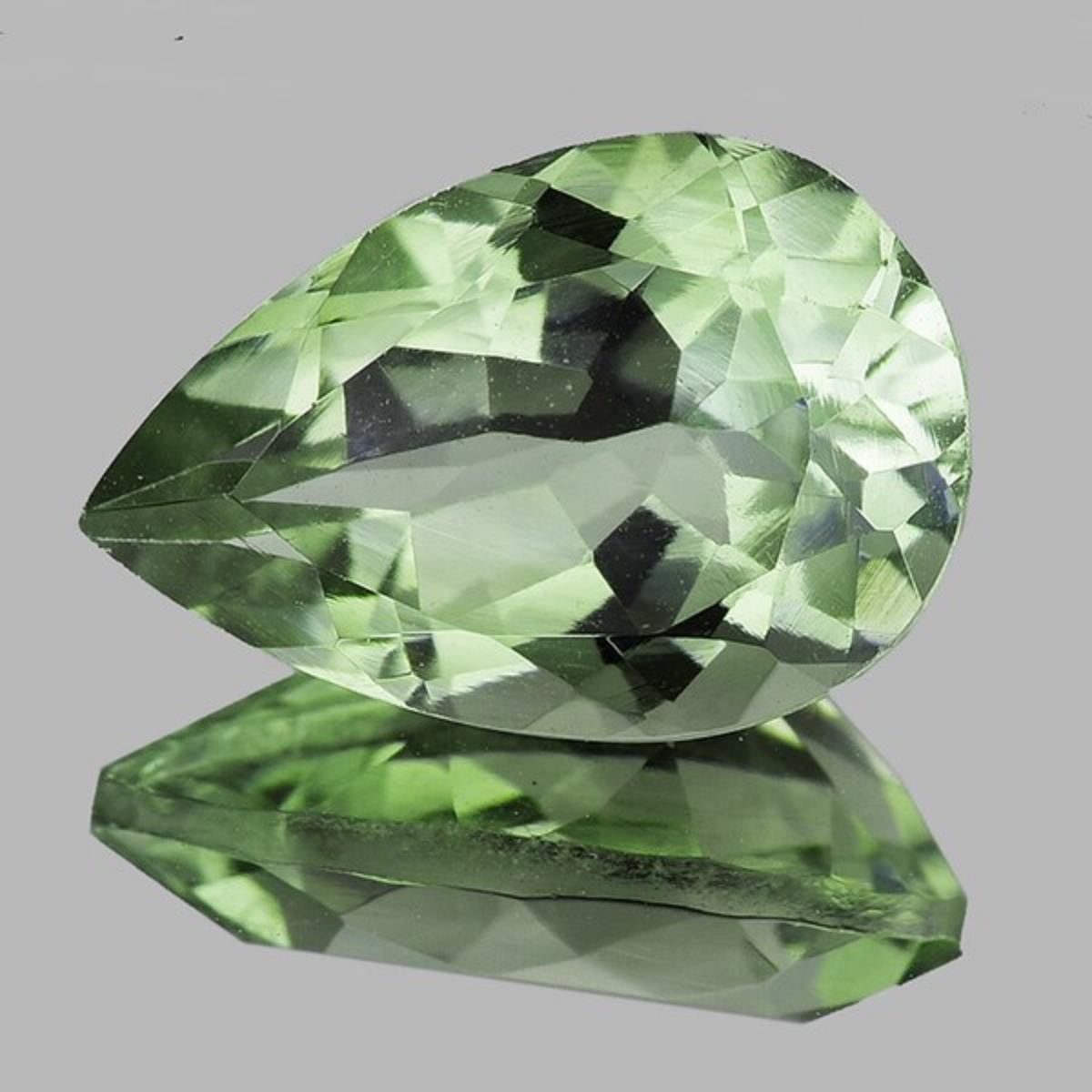 Natural Green Amethyst (Prasiolite)SIZE ( L x W x D ) : 12.10 x 8.09 x 5.70 mm;COLOR : Green;SHAPE : Pear;QUANTITY : 1 pieceLUSTER : Excellent; CLARITY : Flawless-VVS;HARDNESS : 7;ORIGIN : Brazil; TREATMENT : 100% Natural Unheated;