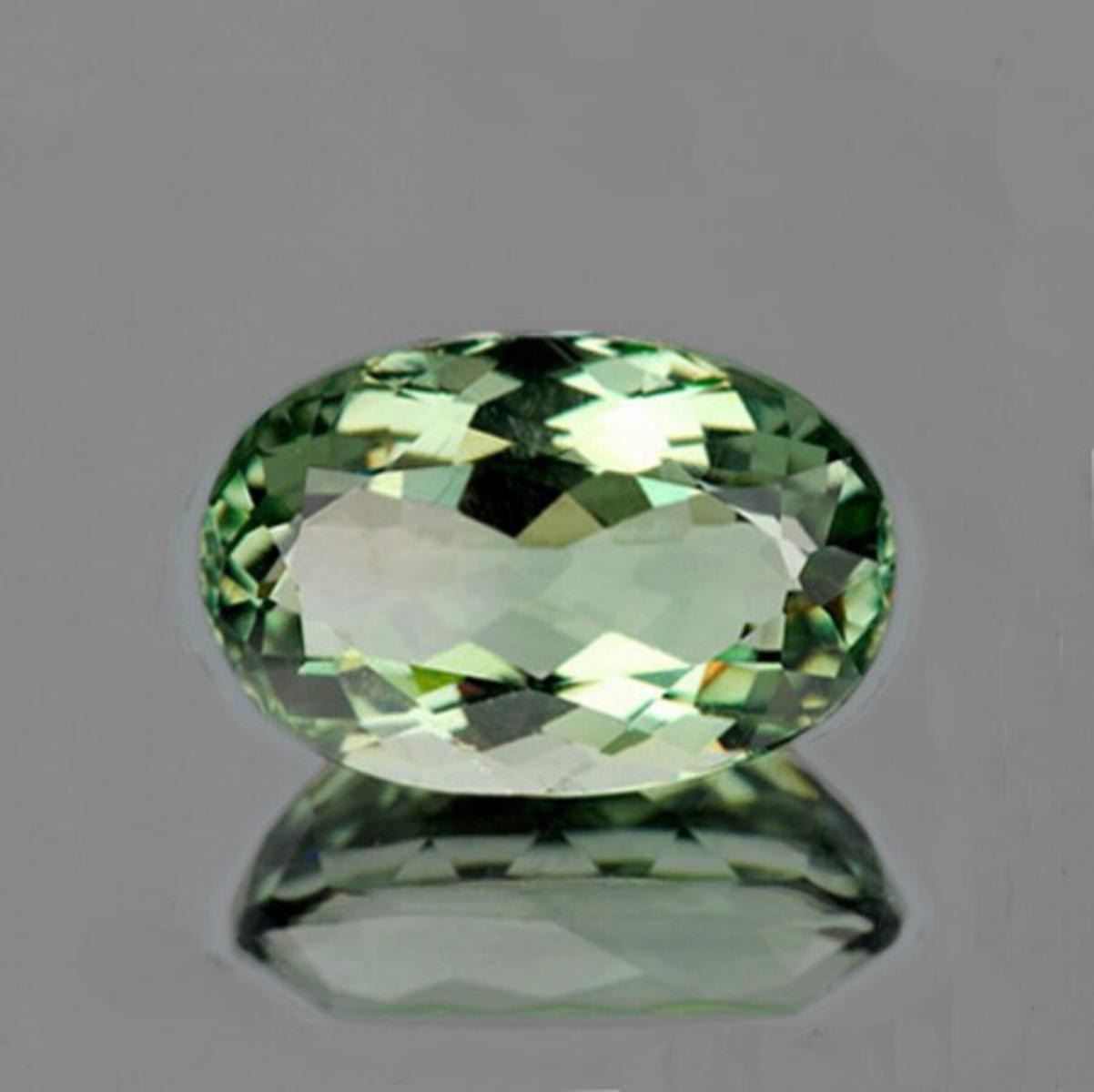 Natural Green Amethyst (Prasiolite);SIZE ( L x W x D ) : 14.97 x 10.00 x 6.28 mm;COLOR : Green;SHAPE : Oval;QUANTITY : 1 piece;LUSTER : Excellent ;CLARITY : FLAWLESS-VVS BEST QUALITY;HARDNESS : 7;ORIGIN : Brazil TREATMENT : 100% Natural Unheated;