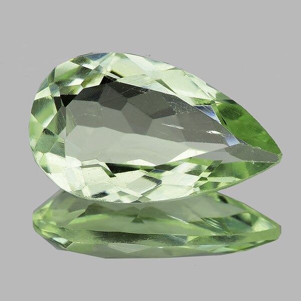 Natural Green Amethyst (Prasiolite)SIZE ( L x W x D ) : 16.02 x 9.64 x 5.31 mmCOLOR : GreenSHAPE : PearQUANTITY : 1 pieceLUSTER : Excellent CLARITY : Flawless-VVSHARDNESS : 7ORIGIN : Brazil TREATMENT : 100% Natural Unheated