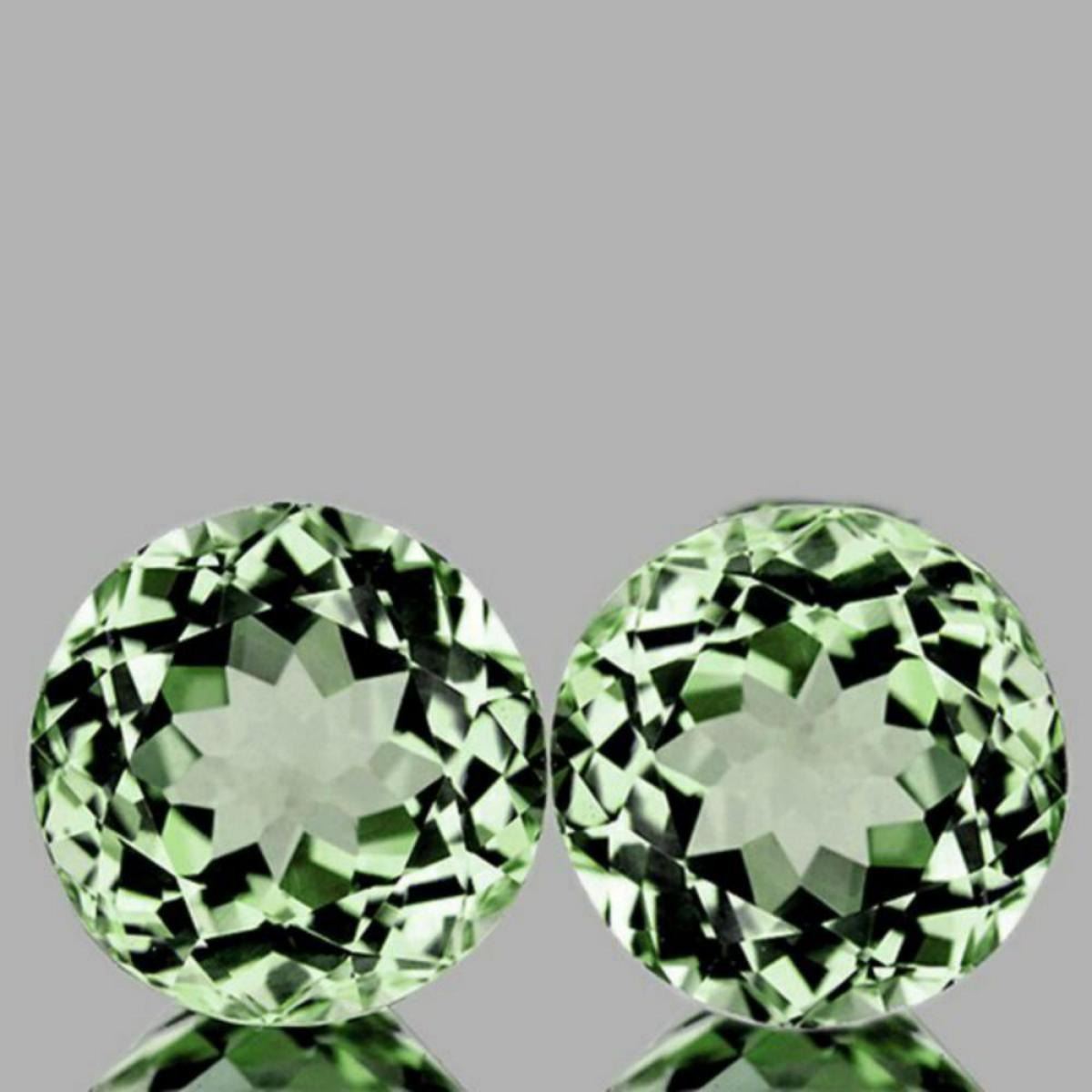 Natural Green Amethyst (Prasiolite)SIZE ( L x W x D ) : 11.0 mm;;COLOR : Green;SHAPE : Round;QUANTITY : 2 pieces;LUSTER : Excellent CLARITY : FLAWLESS-VVS ;BEST QUALITYHARDNESS : 7;ORIGIN : Brazil; TREATMENT : 100% Natural Unheated;