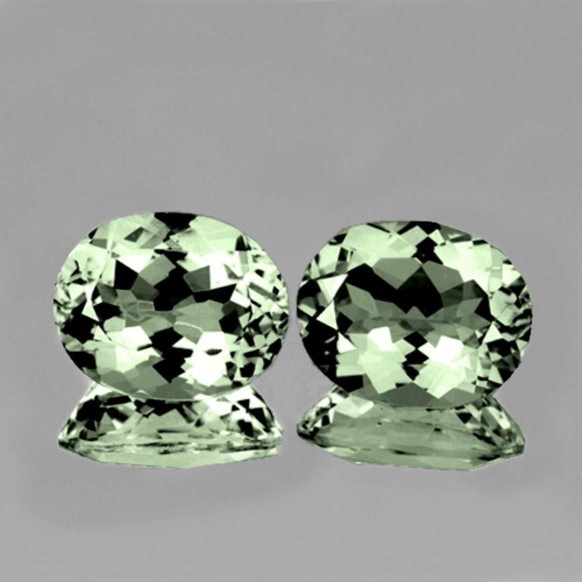 Natural Green Amethyst ; SHAPE : Oval SIZE ( L x W x D ) : 12 x 10 mm QUANTITY : 2 pieces COLOR : Green CLARITY : Flawless ORIGIN : Brazil HARDNESS : 7 LUSTER : Excellent!!! TREATMENT : Heated
