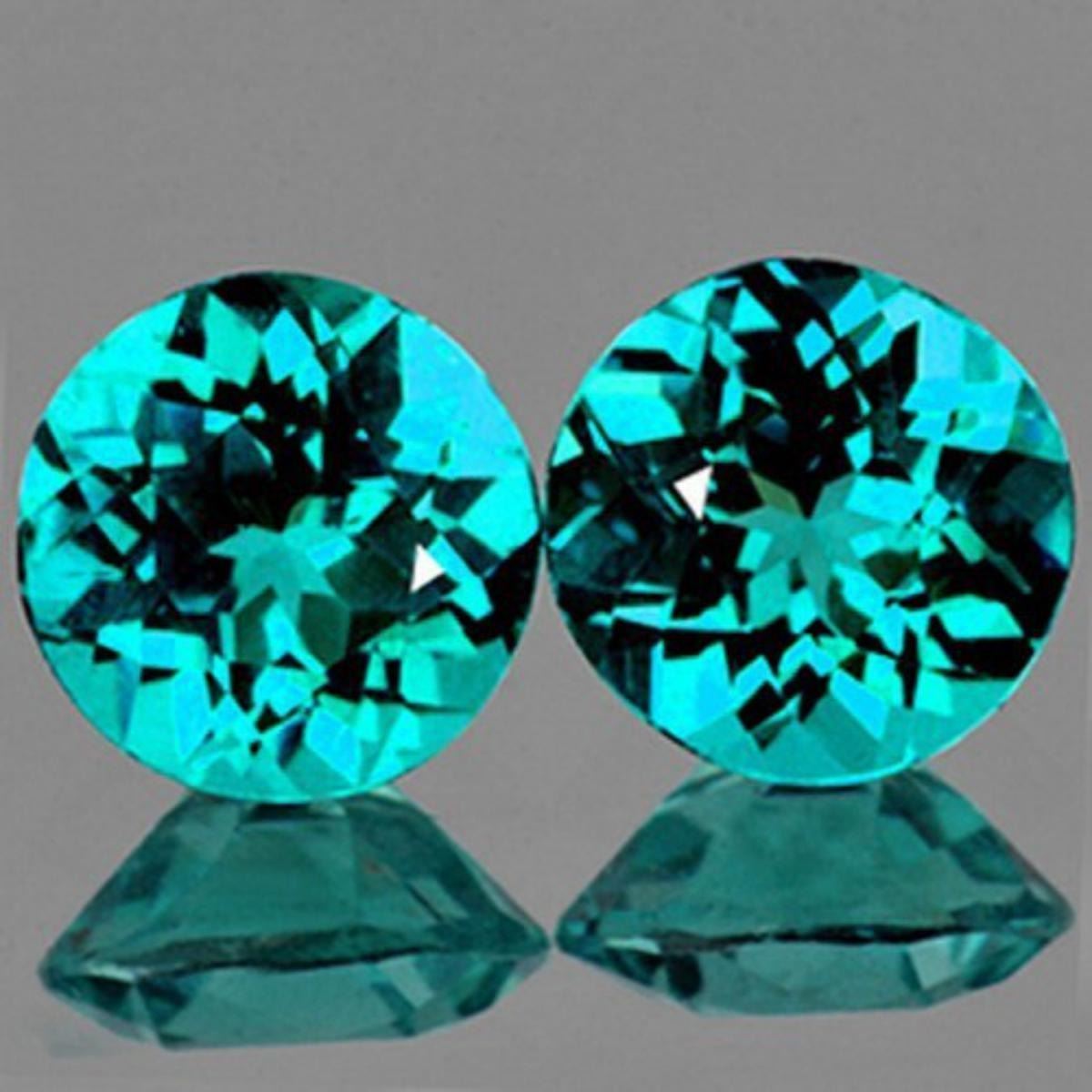 Natural Apatite; WEIGHT : 3.10 cts; SHAPE : Round; SIZE ( L x W x D ) : 7.00 mm; QUANTITY : 2 pieces (Perfectly Match Pair) COLOR : Paraiba Green Blue AAA Color; CLARITY : VVS; ORIGIN : Madagascar; HARDNESS : 5; LUSTER : Excellent!!! TREATMENT : 100% Natural Unheated;