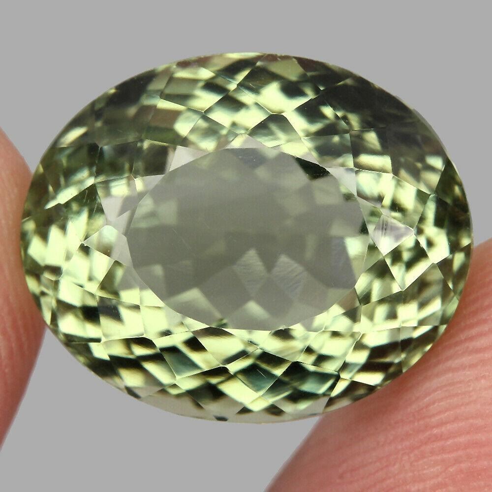 GREEN AMETHYST;TOTAL WEIGHT-21.83 CT ;DIMENSION-18.0 X 15.0 X 13.0 MM.;MAIN STONE SHAPE-OVAL CUT;MAIN STONE COLOR-TOP RICH GREEN;CLARITY/GRADE-VVS;TREATMENT-HEATED;ORIGIN-BRAZIL;HARDNESS-7;