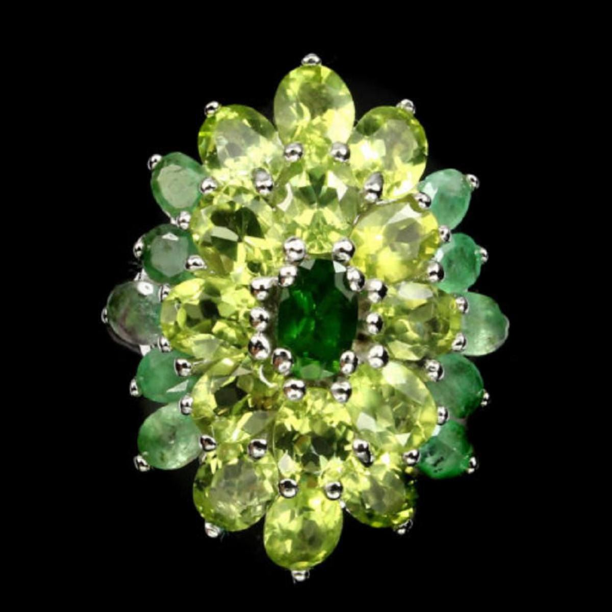 925 STERLING SILVERPLATE14K WHITE GOLDRING SIZE....8.5 (can be resized)MAIN STONECHROME DIOPSIDEOTHER GEMSEMERALD,PERIDOTTOTAL WEIGHT36.28 CT (TOTAL WEIGHT OF SILVER + STONE)DIMENSION* STONE 4.0 X 3.0 TO 6.0 X 4.0 MM. * RING 8.5 SIZE * FACE RING 27.0 X 21.0 MM.MAIN STONE SHAPEOVAL CUTMAIN STONE COLORTOP RICH GREENCLARITY/GRADEIF TO VVSLUSTERDELUXETREATMENTUNHEATEDORIGINRUSSIAHARDNESS5.0 - 5.5