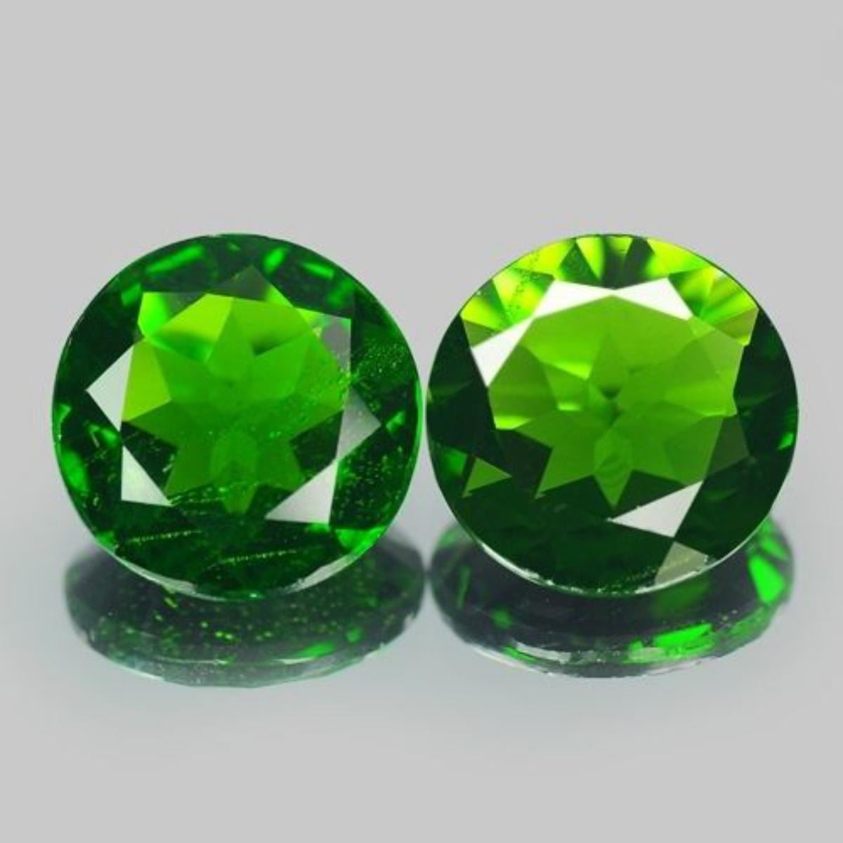 Chrome DiopsideQuantity:2 PiecesShape:RoundWeight:3.17 cts CtsSize:8.2 mmColor:GreenClarity:VS ( + / - One Grade )Origin:RussiaTreatment:None