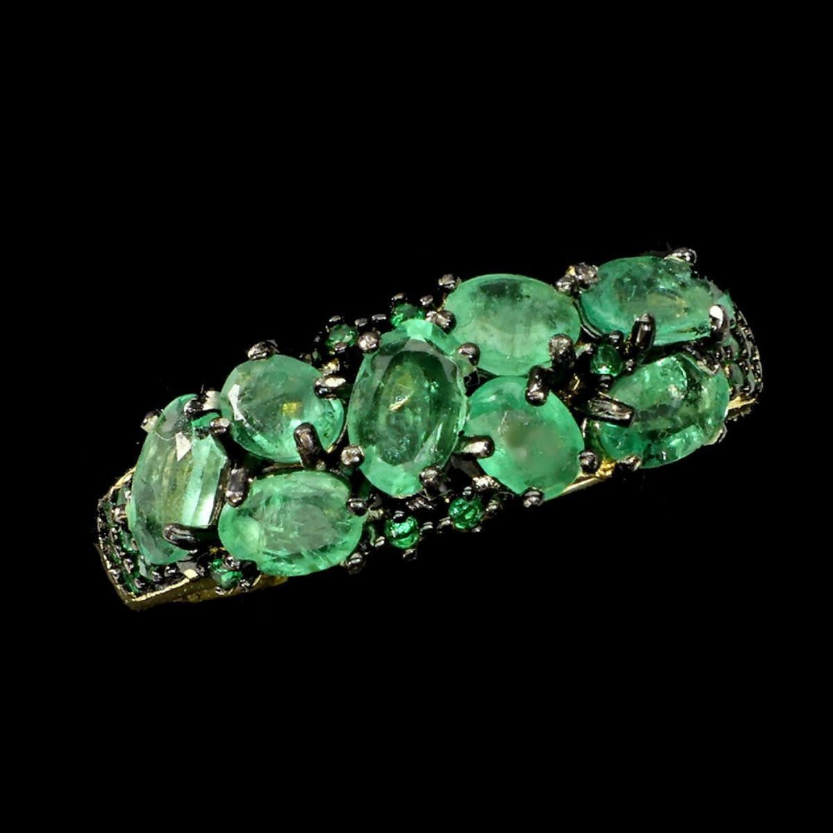925 STERLING SILVER;PLATE-2-TONE BLACK RHODIUM & YELLOW 14K GOLD;RING SIZE/resizable-7;MAIN STONE-EMERALD;TOTAL WEIGHT-2.86 GRAM (TOTAL WEIGHT OF SILVER + STONE)DIMENSION-* STONE 5.0 X 3.0 MM.;** FACE RING- 21.0 X 8.0 MM.;MAIN STONE SHAPE-OVAL CUT;MAIN STONE COLOR-TOP RICH GREEN;TREATMENT-UNHEATED;ORIGIN- COLOMBIA;HARDNESS-7.5 - 8.0;