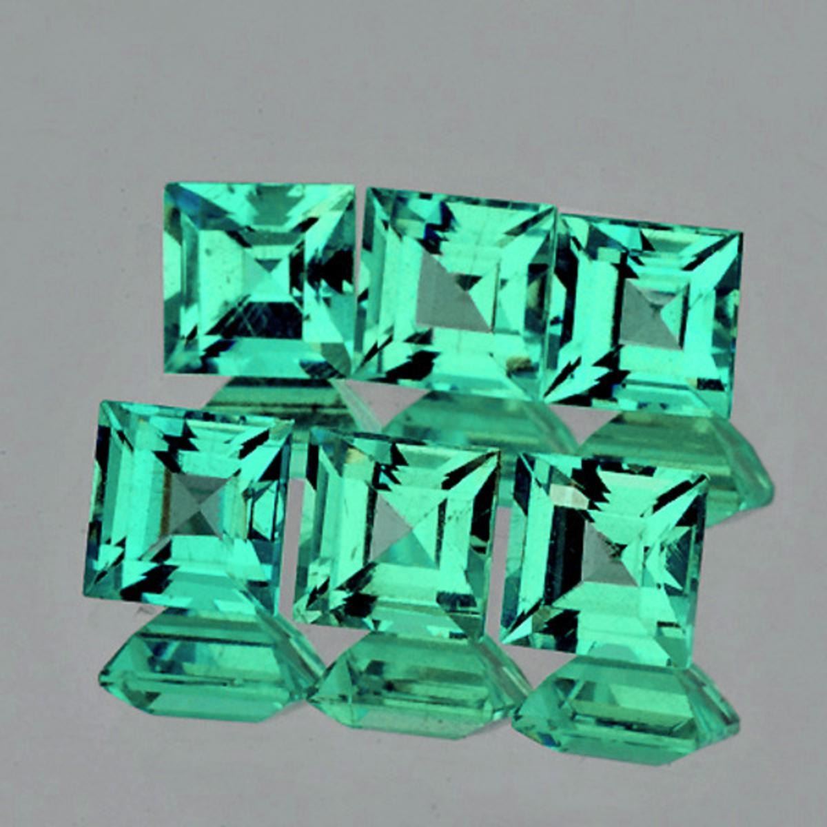 Natural Beryl 'Emerald'SIZE ( L x W x D ) : 3.00 mm;COLOR : Green;SHAPE : Square (AAA Machine Cut)QUANTITY : 6 pieces; LUSTER : Excellent;CLARITY : VVS-VS;HARDNESS : 8;ORIGIN : Colombia; TREATMENT : Oil;