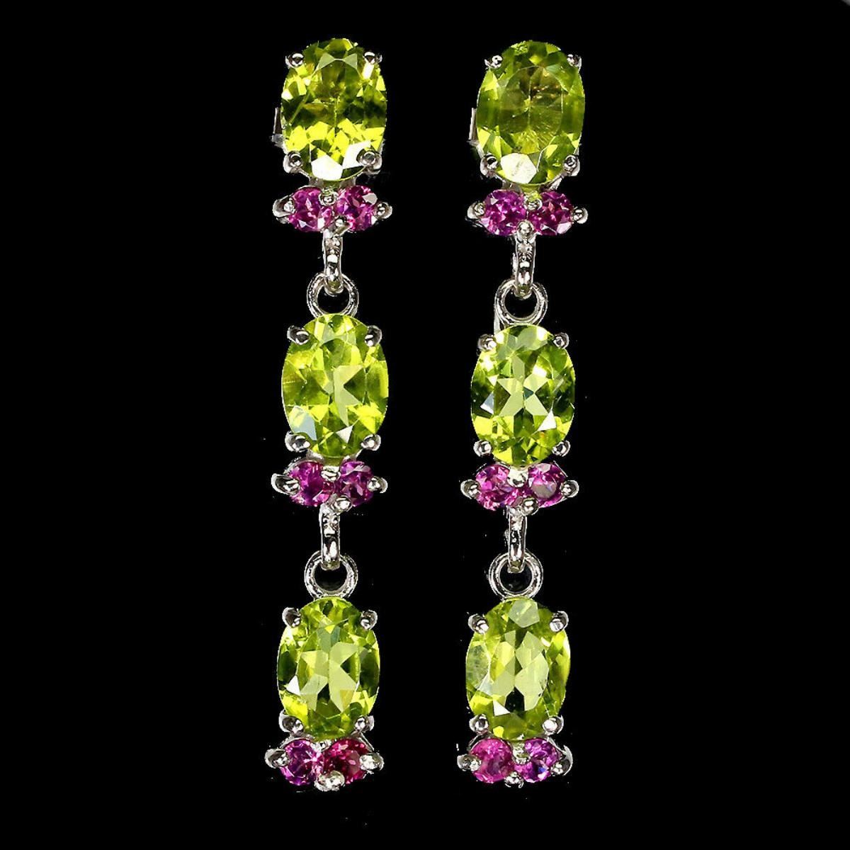 925 STERLING SILVER;PLATE-14K WHITE GOLD;MAIN STONE-PERIDOT;OTHER GEMS-RHODOLITE GARNET;TOTAL WEIGHT-5.58 GRAM (TOTAL WEIGHT OF SILVER + STONE)DIMENSION-* STONE 2.5 TO 8.0 X 6.0 MM. * FACE EARRINGS 41.0 X 7.0 MM.;MAIN STONE SHAPE-OVAL CUT;MAIN STONE COLOR-RICH GREEN;CLARITY/GRADE-IF TO VVS;TREATMENT-UNHEATED;ORIGIN-PAKISTAN;HARDNESS-6.5 - 7.0;