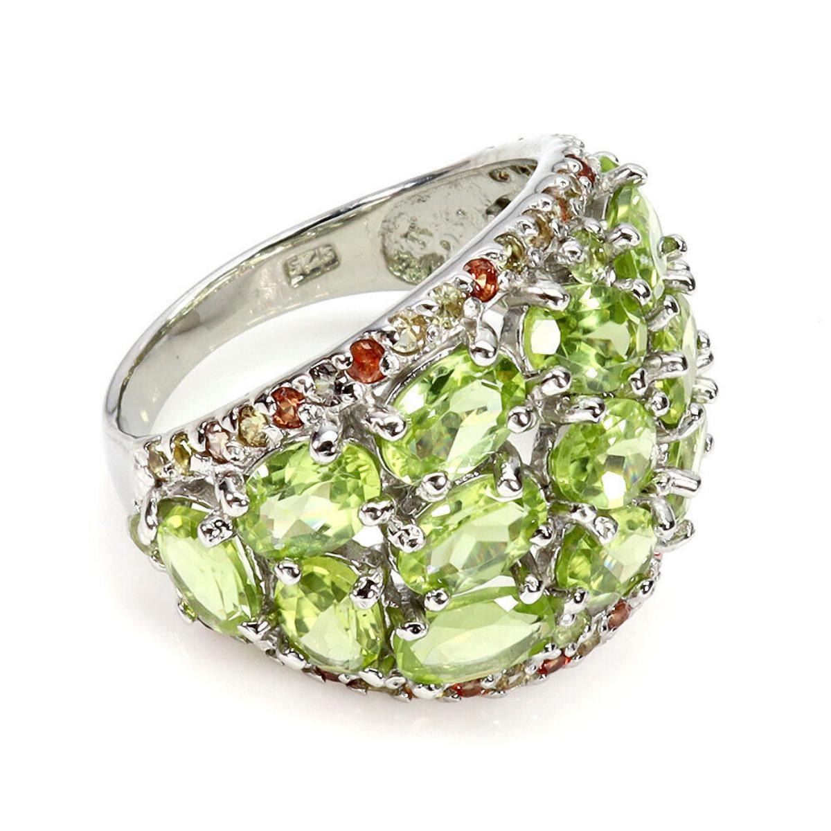 925 STERLING SILVER;PLATE-14K WHITE GOLD;RING SIZE/resizable-8;MAIN STONE-PERIDOT;OTHER GEMS-SAPPHIRE;TOTAL WEIGHT-6.43 GRAM (TOTAL WEIGHT OF SILVER + STONE)DIMENSION-* STONE 1.5 TO 6.0 X 4.0 MM.;* FACE RING- 26.0 X 18.0 MM.;MAIN STONE SHAPE-OVAL CUT;MAIN STONE COLOR-TOP RICH GREEN;CLARITY/GRADE-IF TO VVS;TREATMENT-UNHEATED;ORIGIN-PAKISTAN;HARDNESS-6.5 - 7.0;