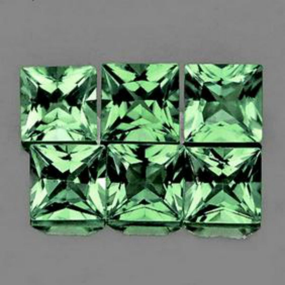 Natural Sapphire (Earthly Mined)SIZE ( L x W x D ) : 2.8 mm;COLOR : Green;SHAPE : Square (Machine Princess Cut)QUANTITY : 6 pieces; LUSTER : Excellent; CLARITY : Flawless-VVS; HARDNESS : 9; ORIGIN : Ceylon;
