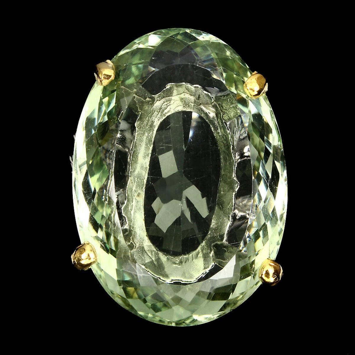 925 STERLING SILVER;PLATE-2-TONE WHITE & YELLOW 14K GOLD;RING SIZE-8(resizeable);MAIN STONE-GREEN AMETHYST;TOTAL WEIGHT-12.61 GRAM (TOTAL WEIGHT OF SILVER + STONE)DIMENSION* STONE 28.0 X 20.0 MM. * RING SIZE 8.0 * FACE RING 28.0 X 20.0 MM.;MAIN STONE SHAPE-OVAL CUT;MAIN STONE COLOR-TOP NICE GREEN;CLARITY/GRADE-IF;ORIGIN-BRAZIL;HARDNESS-7;