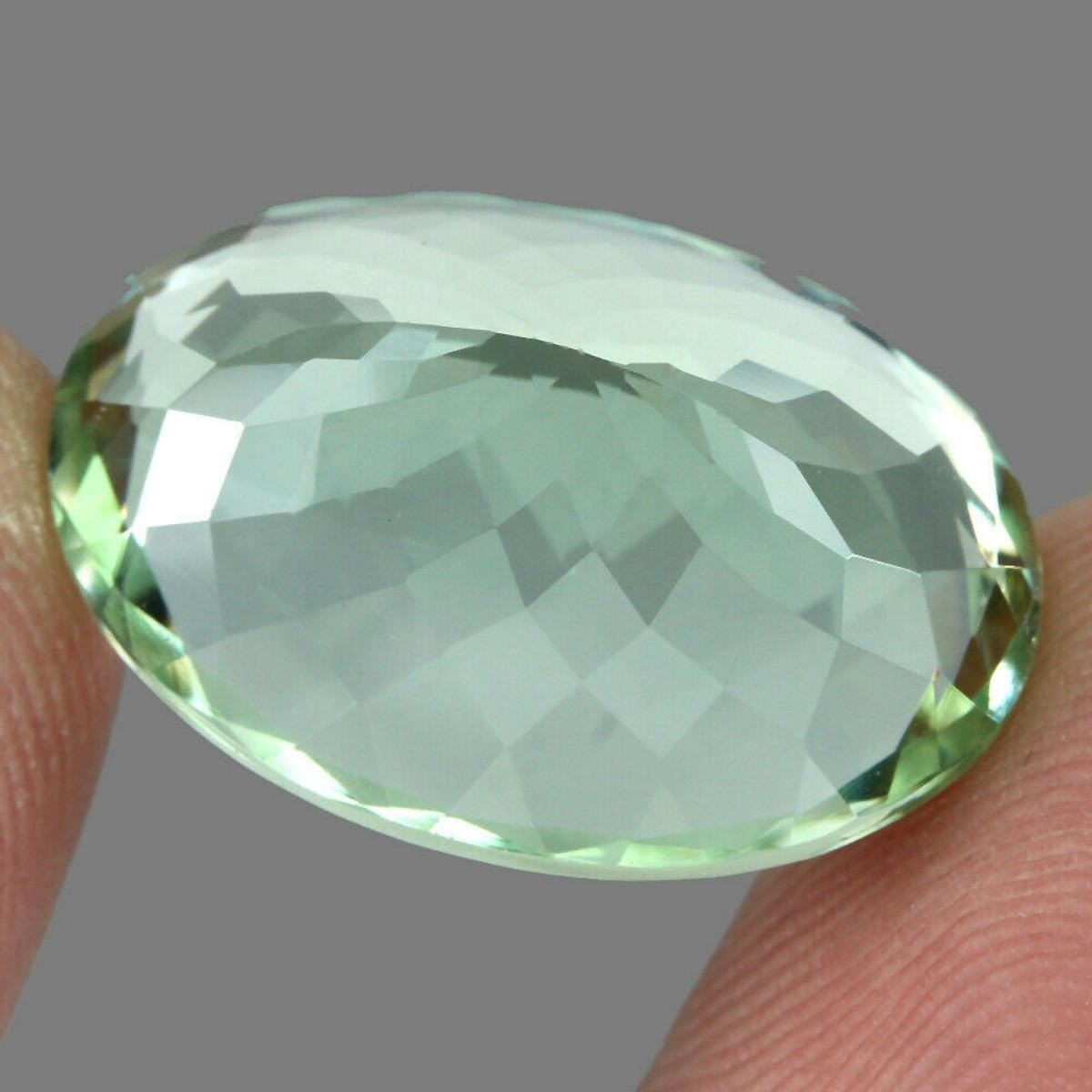 GREEN AMETHYST;TOTAL WEIGHT-26.60 CT ;DIMENSION-24.0 X 17.0 X 12.0 MM.;MAIN STONE SHAPE-OVAL CUT;MAIN STONE COLOR-TOP RICH GREEN;CLARITY/GRADE-VVS;LUSTER-SPARKLE;TREATMENT-HEATED;ORIGIN-BRAZIL;;HARDNESS-7;