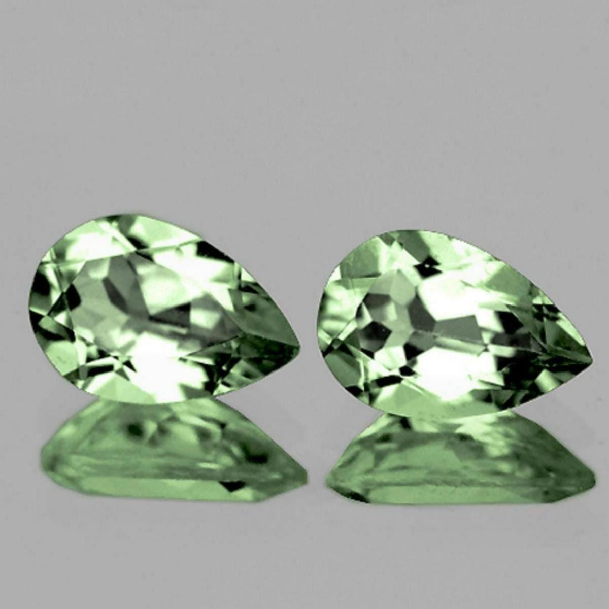 Natural Green Amethyst....... SHAPE : Pear SIZE ( L x W x D ) : 12 x 8 mm QUANTITY : 2 pieces COLOR : Green CLARITY : Flawless ORIGIN : Brazil HARDNESS : 7 LUSTER : Excellent!!! TREATMENT : Heated