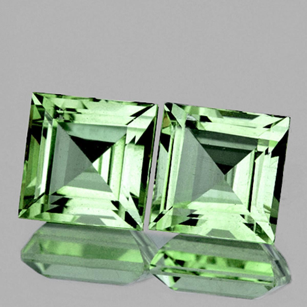 Natural Green Amethyst WEIGHT : 13.50 cts SHAPE : Square SIZE ( L x W x D ) : 12.00 mm QUANTITY : 2 pieces (Perfect Matching Pair) COLOR : Intense Green CLARITY : Flawless-VVS1 AAA Grade ORIGIN : Brazil HARDNESS : 7 LUSTER : Excellent!!! TREATMENT : Heated