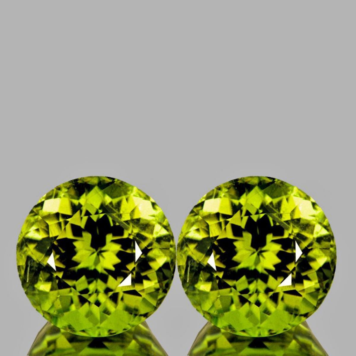 Natural Mali Garnet; WEIGHT : 1.75 cts; SHAPE : Round (Brilliant Cut) SIZE ( L x W x D ) : 5.20 mm; QUANTITY : 2 pieces (Perfect Matching Pair) COLOR : Intense Green Yellow AAA Color; CLARITY : VVS AAA Grade; ORIGIN : Sandare Mine in Mali’s Kayes Region; HARDNESS : 7; LUSTER : AAA Fire!!! TREATMENT : 100% Natural Unheated;