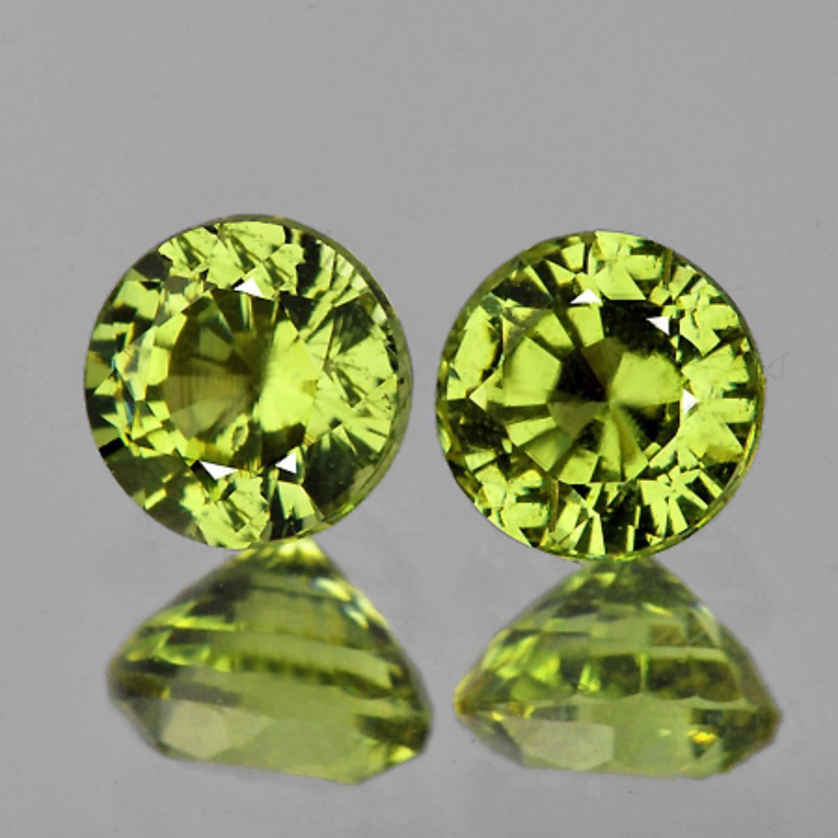 Natural Garnet; SHAPE : Round; SIZE ( L x W x D ) : 4.70 mm; QUANTITY : 2 pieces (Perfctly Matched Pair) COLOR : Green Yellow ; CLARITY : Flawless-VVS; ORIGIN : Sandare Mine in Mali?s Kayes Region; HARDNESS : 7; LUSTER : AAA Fire!!!; TREATMENT : 100% Natural Unheated;