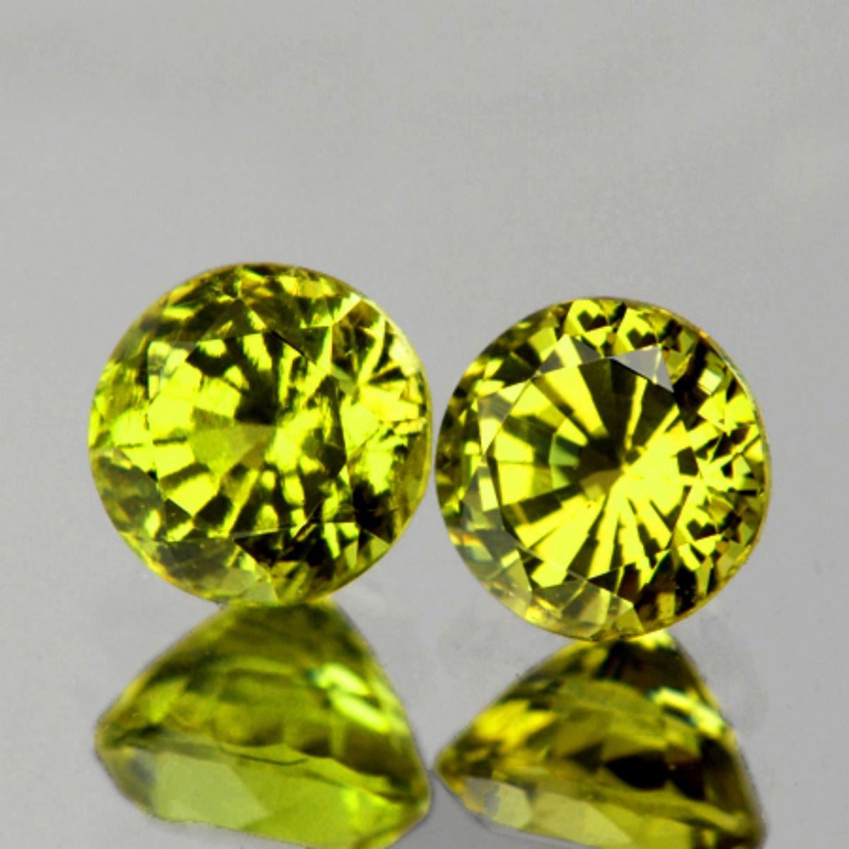 Natural Garnet; SHAPE : Round; SIZE ( L x W x D ) : 4.20 mm; QUANTITY : 2 pieces (Perfctly Matched Pair) COLOR : Intense Green Yellow AAA Color; CLARITY : Flawless-VVS AAA Grade; ORIGIN : Sandare Mine in Mali?s Kayes Region; HARDNESS : 7; LUSTER : AAA Fire!!! TREATMENT : 100% Natural Unheated;
