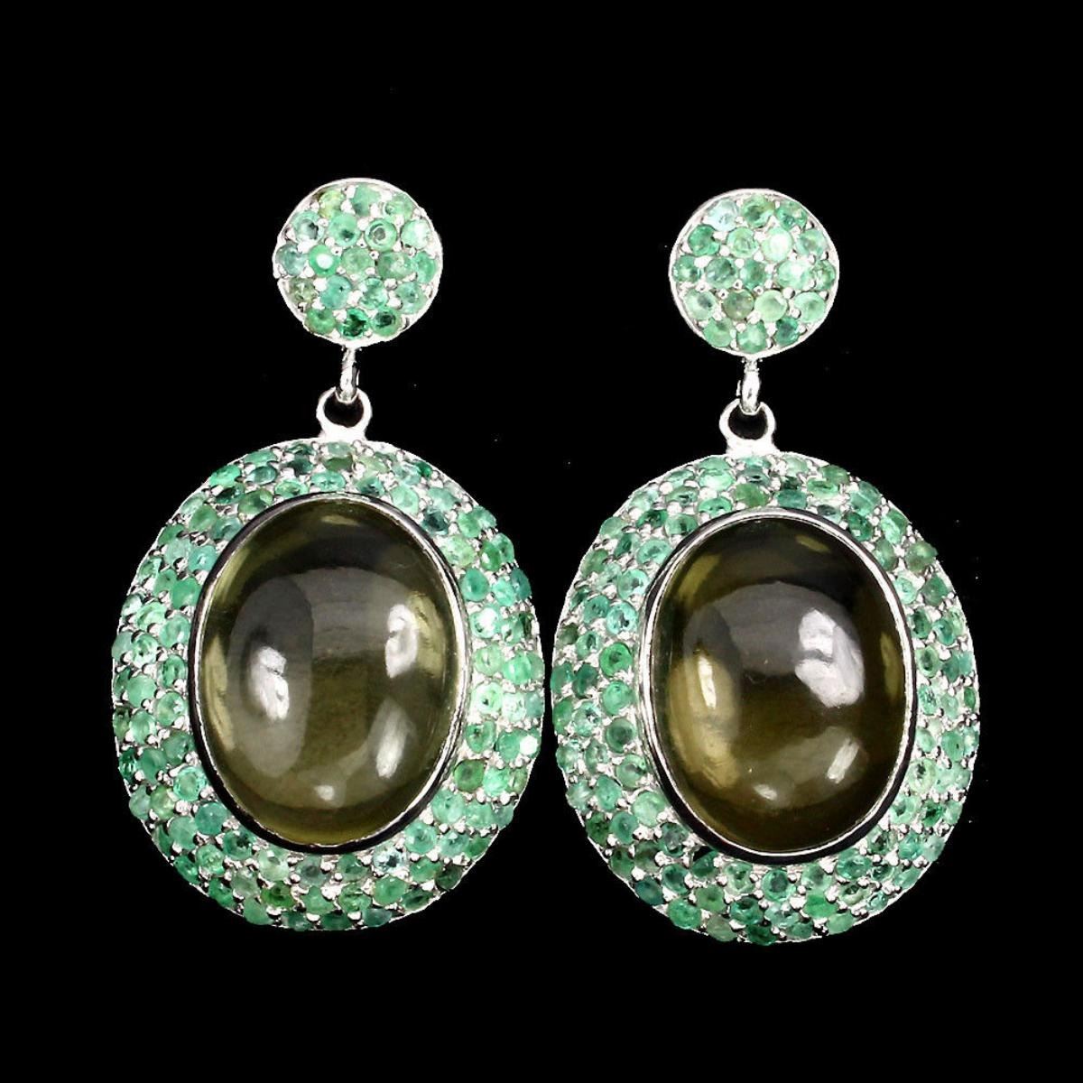 925 STERLING SILVER;PLATE....14K WHITE GOLD;;MAIN STONELEMON QUARTZOTHER GEMSEMERALDTOTAL WEIGHT87.36 CT (TOTAL WEIGHT OF SILVER + STONE)DIMENSION* STONE 1.5 TO 19.0 X 14.0 MM. * FACE EARRINGS 44.0 X 25.0 MM.MAIN STONE SHAPEOVAL CABOCHONMAIN STONE COLORTOP LEMON YELLOWCLARITY/GRADETRANSPARENTLUSTERRAVISHINGTREATMENTUNHEATEDORIGINBRAZILHARDNESS7.0 - 8.0