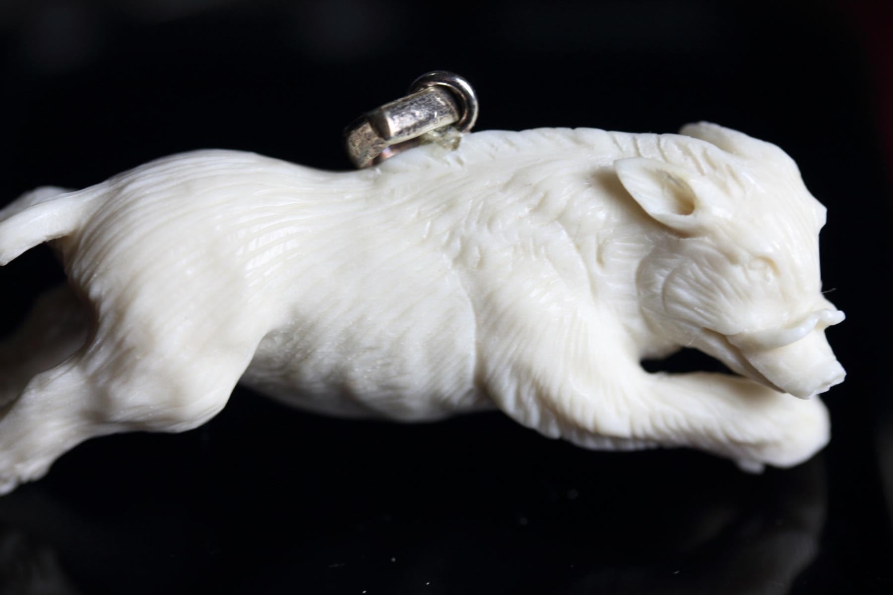 Natural Hand Craved Antler 3D Boar Pendant.........size - 58 x 19 mm