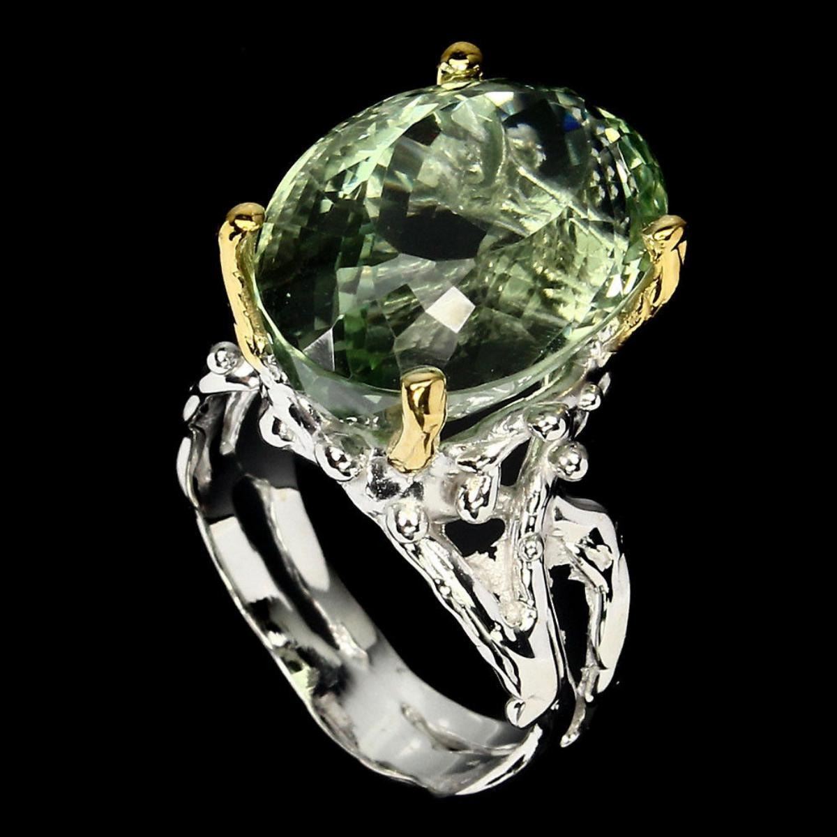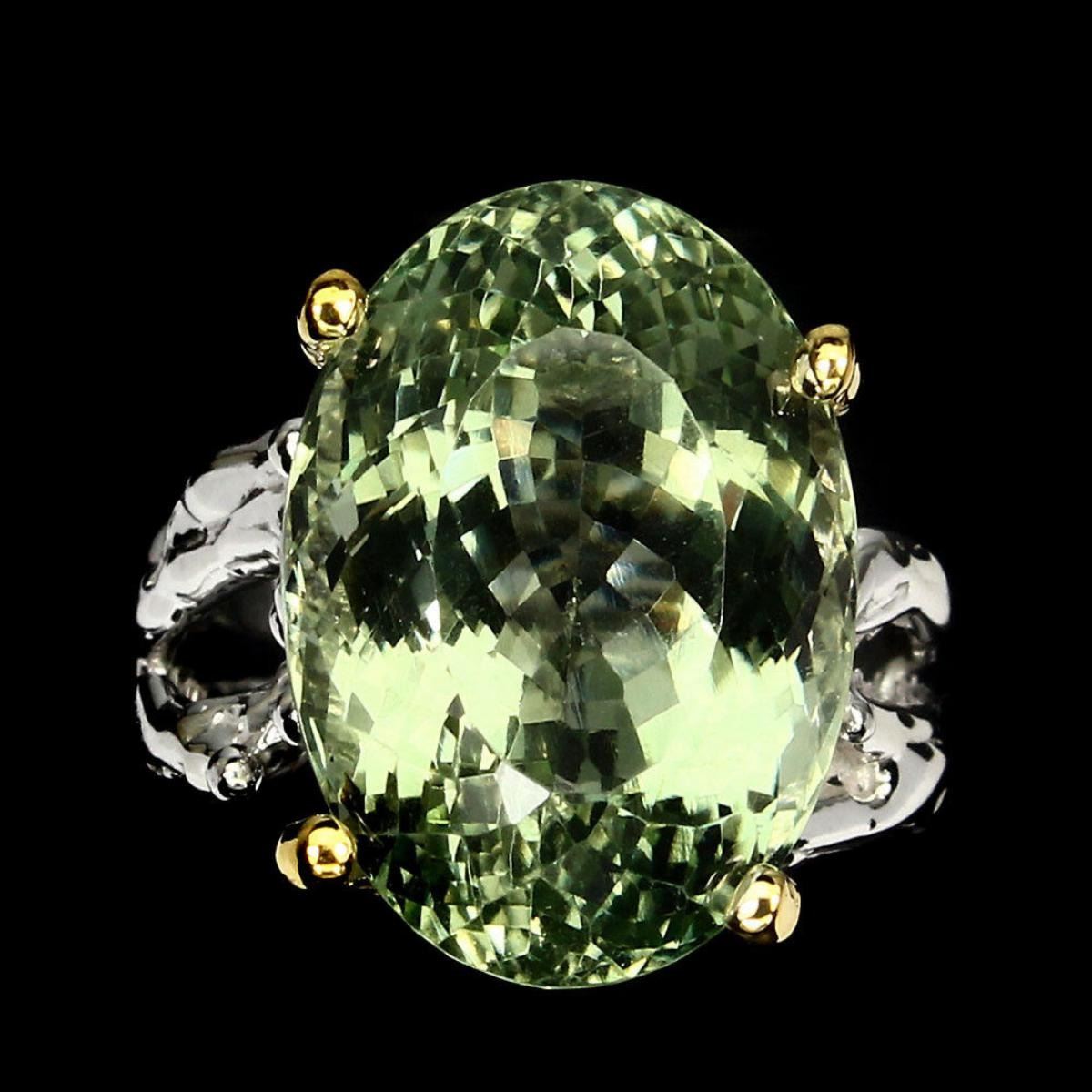 925 STERLING SILVER;PLATE2-TONE WHITE & YELLOW 14K GOLD;RING SIZE7.5(resizeable)MAIN STONEAMETHYST;TOTAL WEIGHT45.33 CT (TOTAL WEIGHT OF SILVER + STONE)DIMENSION* STONE 19.0 X 13.0 MM. * RING SIZE 7.5 * FACE RING 19.0 X 13.0 MM.;MAIN STONE SHAPEOVAL CUT;MAIN STONE COLORTOP NICE GREEN;CLARITY/GRADEIF;LUSTERPRECIOUS;TREATMENTHEATED;ORIGINBRAZIL;HARDNESS7.0;