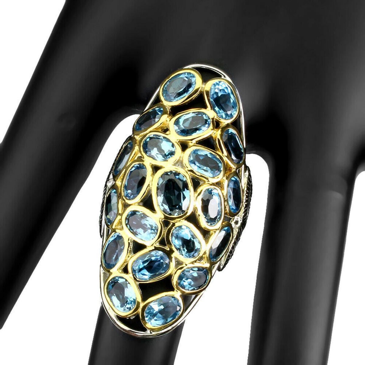 925 STERLING SILVER;PLATE;2-TONE WHITE & YELLOW 14K GOLDRING SIZE/resizeable-9MAIN STONE;SWISS BLUE TOPAZ;TOTAL WEIGHT;11.49 GRAM (TOTAL WEIGHT OF SILVER + STONE)DIMENSION;* STONE 6.0 X 4.0 TO 7.0 X 5.0 MM. * RING SIZE 9.0 * FACE RING; 43.0 X 22.0 MM.;MAIN STONE SHAPE;OVAL CUT;MAIN STONE COLOR;TOP SWISS BLUE;CLARITY/GRADE;IF TO VVS;ORIGIN;AFRICA;HARDNESS-8;
