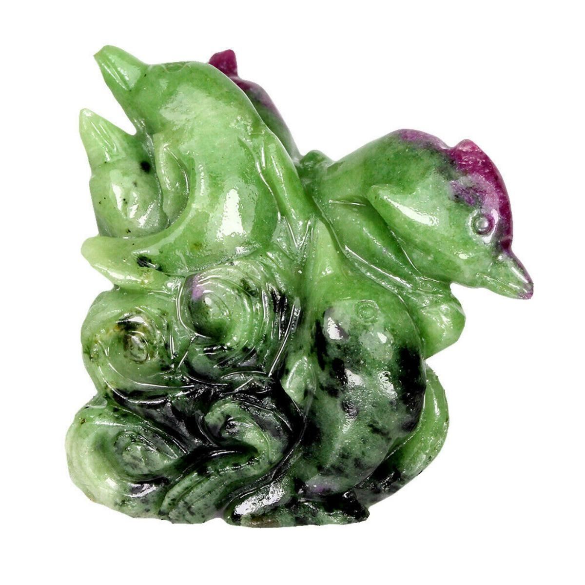 Natural Handcarved Ruby Zoisite 315 Carats Dolhphins......TOTAL WEIGHT316.58 CT;DIMENSION48.0 X 43.0 X 32.0 MM.;MAIN STONE SHAPEDOLPHIN ON WAVE CARVING;MAIN STONE COLORMULTI-COLOR;TREATMENTUNHEATED;ORIGINTANZANIA - AFRICA;
