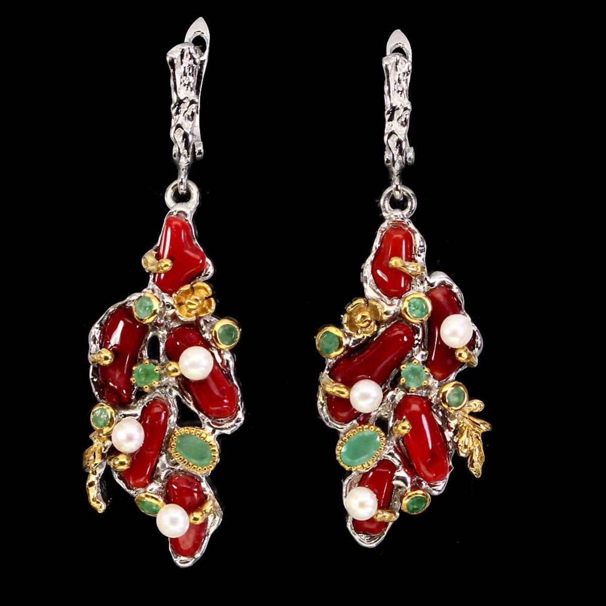 925 STERLING SILVERPLATE2-TONE WHITE & YELLOW 14K GOLDMAIN STONECORAL;OTHER GEMSEMERALD,PEARL;TOTAL WEIGHT67.49 CT (TOTAL WEIGHT OF SILVER + STONE)DIMENSION* STONE 2.0 TO 10.0 X 4.0 MM. * PEARL 3.5 MM. * FACE EARRINGS 55.0 X 16.0 MM.;MAIN STONE SHAPEROUGH NATURAL;MAIN STONE COLORTOP RICH RED;CLARITY/GRADEOPAQUE;LUSTERATTRACTIVE;TREATMENTUNHEATED;ORIGINCROATIA;HARDNESS3;