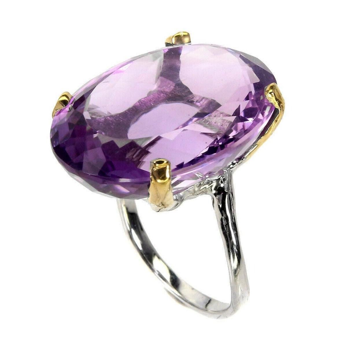 925 STERLING SILVER;PLATE-2-TONE WHITE & YELLOW 14K GOLD;RING SIZE/resizeable-6.5;MAIN STONE-AMETHYST;TOTAL WEIGHT-8.28 GRAM (TOTAL WEIGHT OF SILVER + STONE)DIMENSION-* STONE 24.0 X 17.0 MM. * RING SIZE 6.5 * FACE RING 24.0 X 17.0 MM.;MAIN STONE SHAPE-OVAL CUT;MAIN STONE COLOR-TOP RICH PURPLE;CLARITY/GRADE-IF TO VVS;TREATMENT-UNHEATED;ORIGIN-BRAZIL;HARDNESS-7;