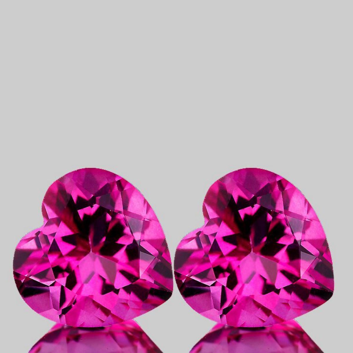 Natural Topaz.......... SHAPE : Heart; SIZE ( L x W x D ) : 8.00 mm; QUANTITY : 2 pieces ( Perfectly Matched Pair ) COLOR : Hot Pink Best AAA Color; CLARITY : Flawless-VVS1 AAA Grade; ORIGIN : Brazil; HARDNESS : 8; LUSTER : Excellent!!! TREATMENT : Heated;
