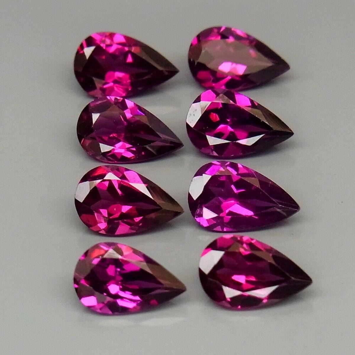 Rhodolite Garnet ; SHAPE Pear Shape; WEIGHT 6.78 Ct. SIZE 8 X 5 mm; QUANTITY 8 Pieces COLOR Hot Pink Purple; CLARITY - VS; LUSTER Superior ORIGIN Africa TREATMENT None HARDNESS 7-7.5
