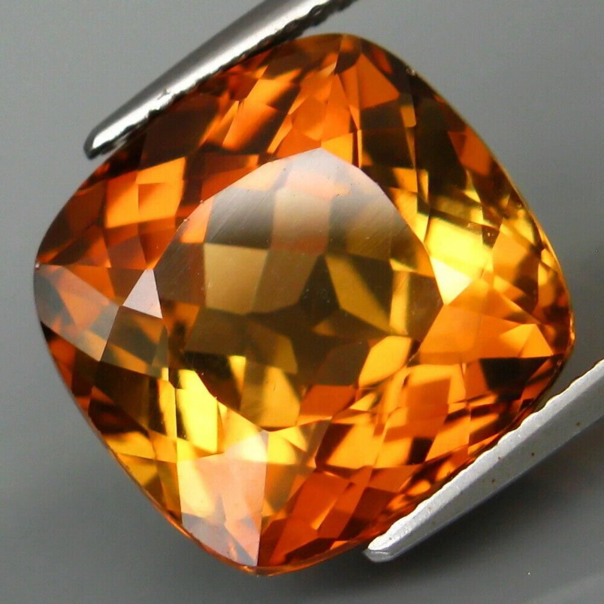 Imperial Topaz SHAPE Classic Cushion WEIGHT 15.78 Ct. SIZE 14.1 X 13.8 X 9.2 mm QUANTITY 1 Piece; COLOR Imperial Champagne ; ; ORIGIN Brazil; TREATMENT Radiated ; HARDNESS 8;