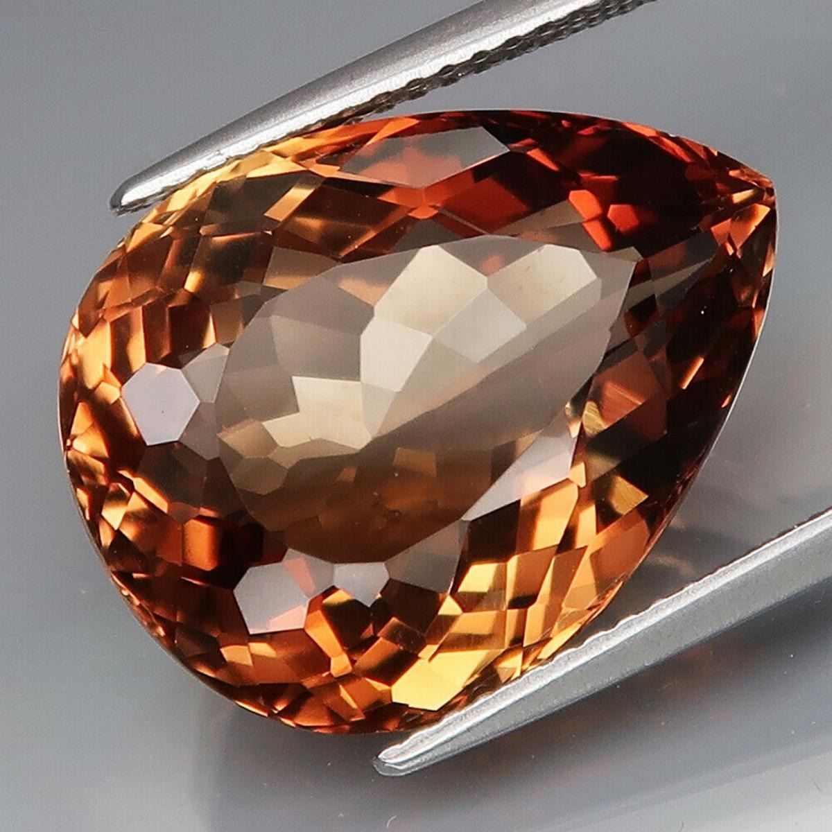 Imperial Topaz; SHAPE Pear Shape WEIGHT 18.78 Ct.SIZE 18.5 X 14.5 X 9.1 mm QUANTITY 1 Piece COLOR Imperial Champagne CLARITY VVS ORIGIN Brazil ; TREATMENT Radiated HARDNESS 8