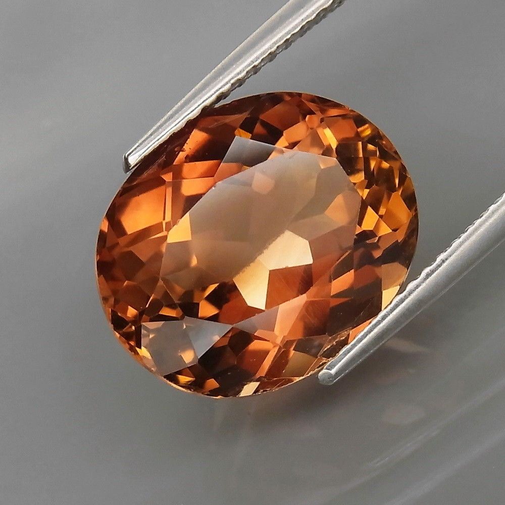 Imperial Topaz SHAPEOval WEIGHT 10.25 Ct.SIZE14.1 X 11.7 X 8.1 mm QUANTITY 1 Piece COLOR Imperial Champagne CLARITY CLEAN LUSTER Superior ORIGIN Brazil TREATMENT Radiated HARDNESS8