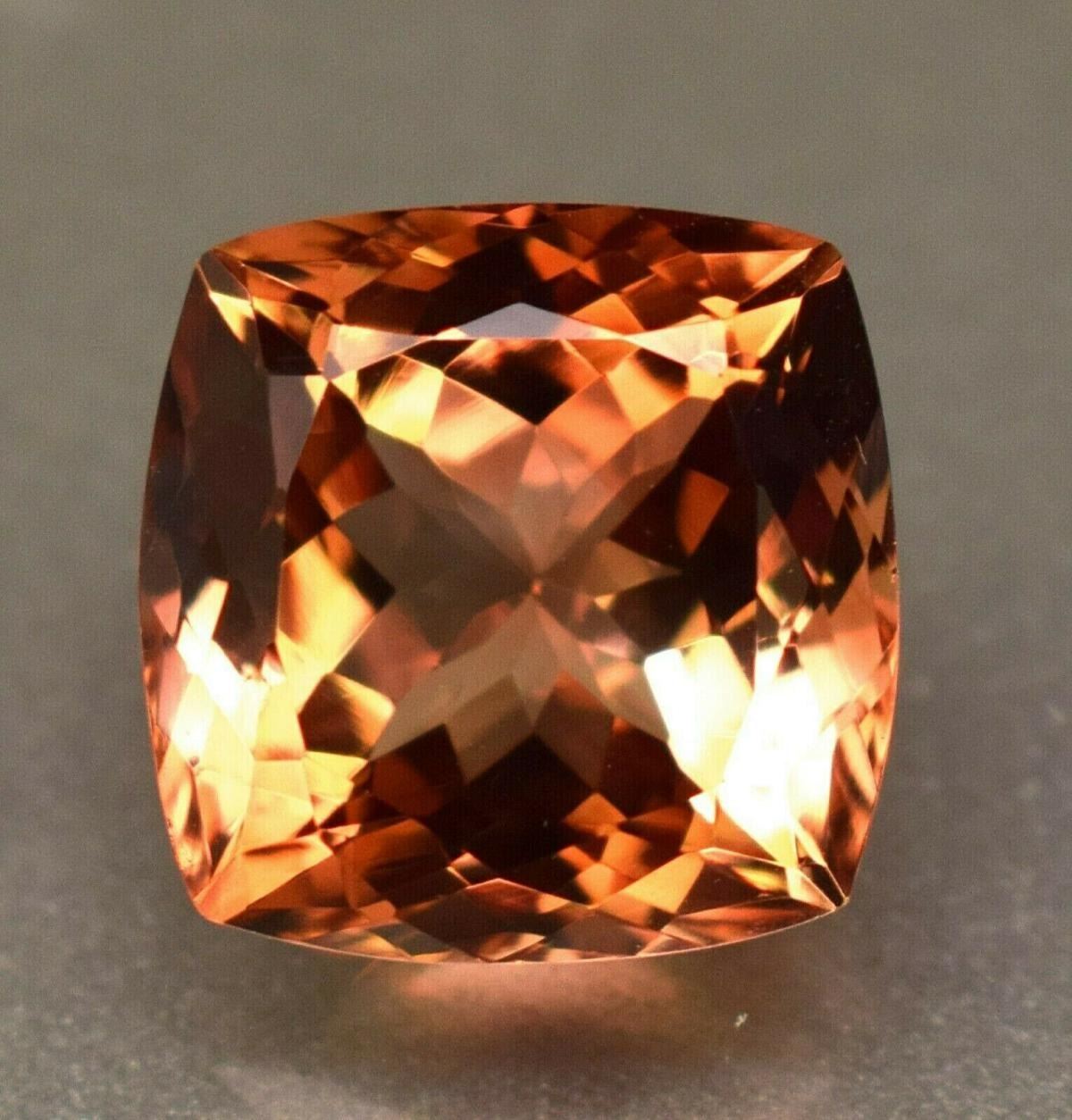 Imperial Topaz SHAPE Emerald Cut WEIGHT 12.60 Ct.SIZE 13.49 X 12.74 mm ;QUANTITY 1 Piece COLOR Imperial Champagne CLARITY VVS ; ORIGIN Brazil; TREATMENT Radiated HARDNESS 8