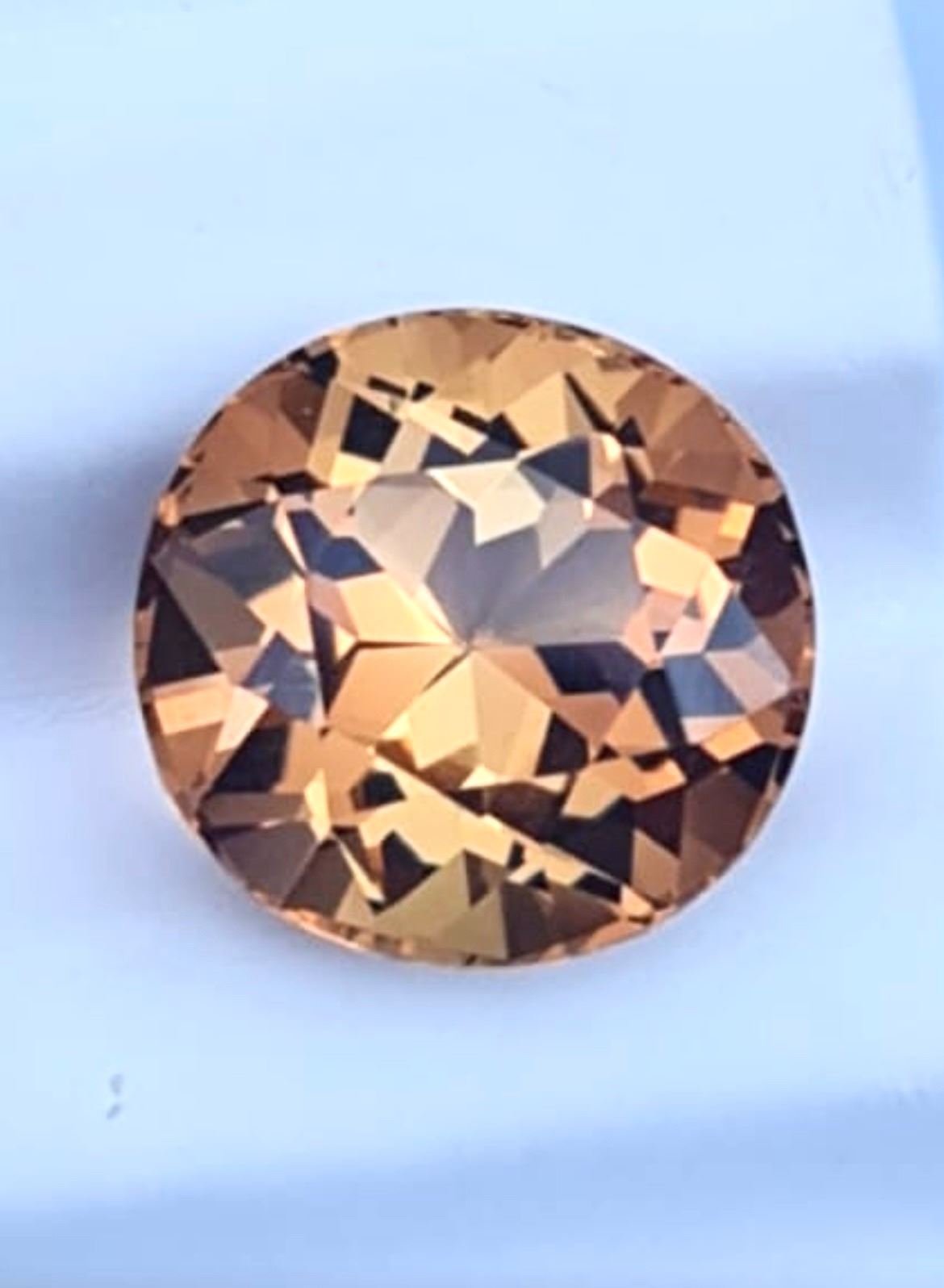 Natural Topaz 14.70 Carats ....Shape - Round ; SIZE ( L x W x D ) : 14.05 mm; QUANTITY : 1 piece COLOR : Champagne Imperial; CLARITY : VVS/Eye Clean AAA Grade; ORIGIN : Brazil; HARDNESS : 8; LUSTER : Excellent!!! TREATMENT : Heated