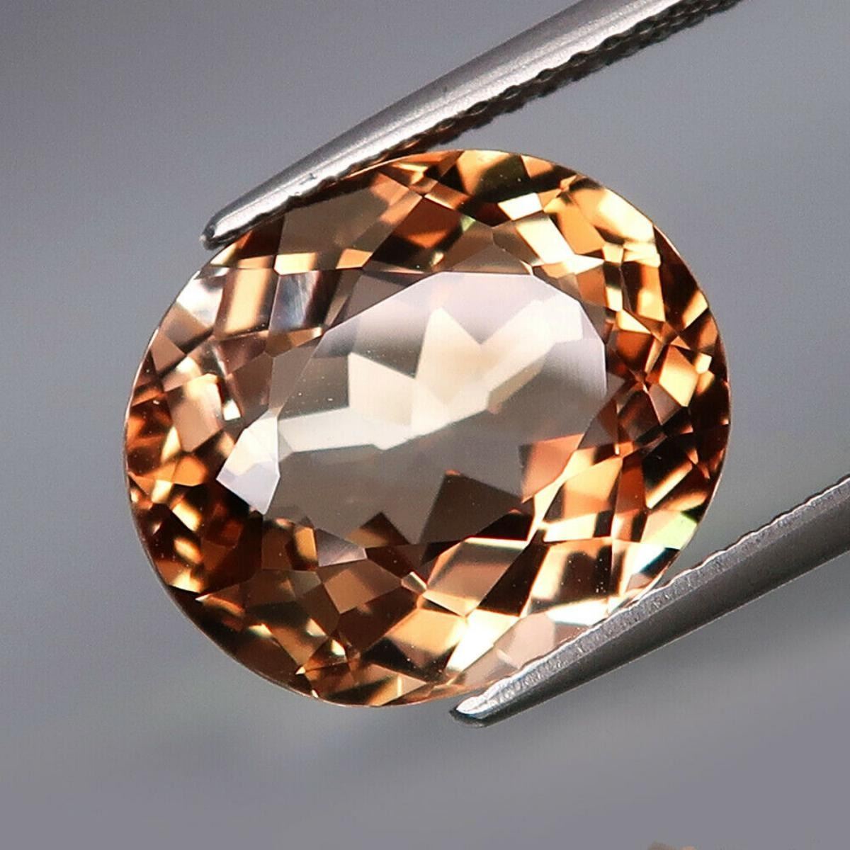 Imperial Topaz SHAPE Oval WEIGHT 10.40 Ct.SIZE 14.2 X 12.1 X 7.6 mm; QUANTITY 1 Piece; COLOR Champagne; ORIGIN Brazil; TREATMENT Radiated; HARDNESS 8