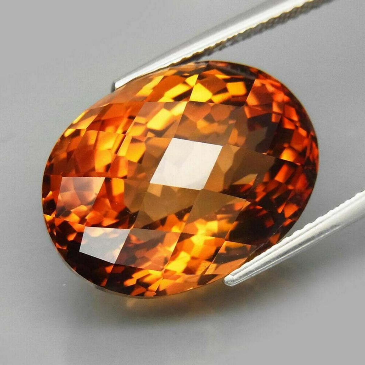 Imperial Topaz SHAPE Oval Checkerboard WEIGHT 24.88 Ct.SIZE 18.4 X 13.8 X 12.5 mm QUANTITY 1 Piece COLOR Imperial Champagne CLARITY CLEAN ; ORIGIN Brazil TREATMENT Radiate dHARDNESS 8