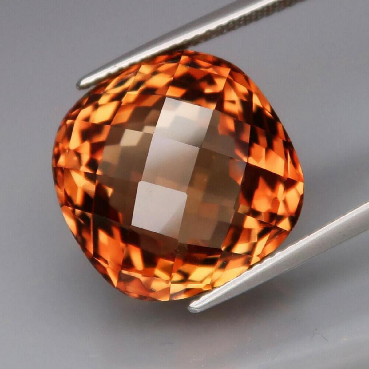Imperial Topaz SHAPE Classic Cushion Checkerboard WEIGHT 28.19 Ct. SIZE 16 X 15.8 X 13.1 mm; QUANTITY 1 Piece COLOR Imperial Champagne CLARITY CLEAN LUSTER Superior ORIGIN Brazil TREATMENT Radiated HARDNESS 8