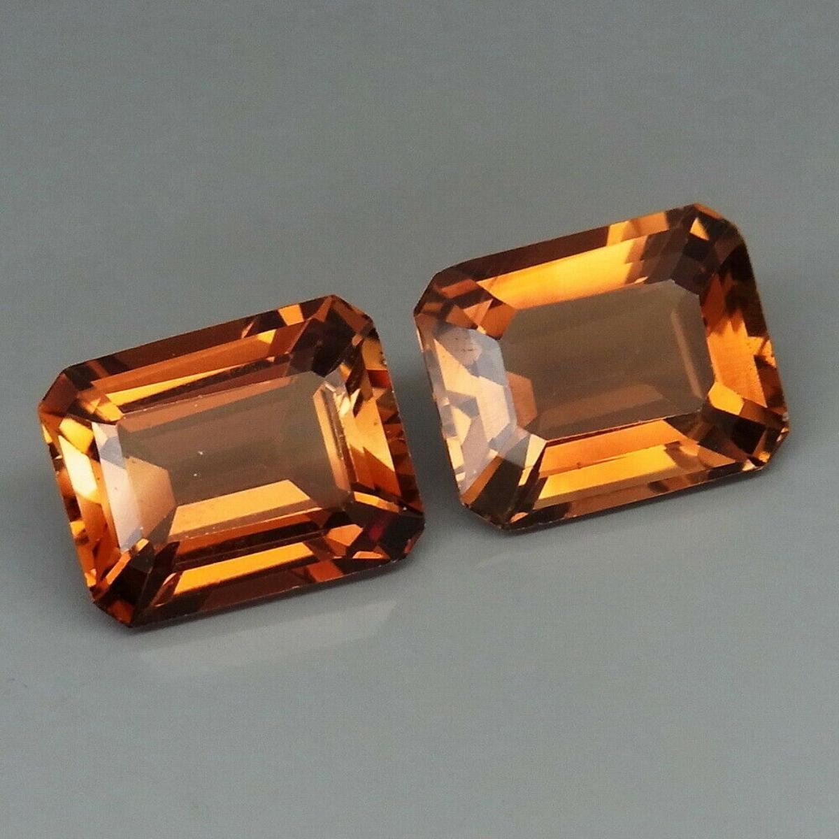 Imperial Topaz SHAPE Emerald ; SIZE 8.5 X 6 mm; QUANTITY 2 Pieces ;COLOR - Imperial Champagne ; LUSTER Superior ;ORIGIN Brazil ;TREATMENT Radiated ;HARDNESS 8